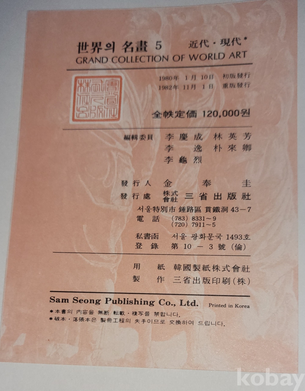1982년 발행된 세계의 명화(근대.현대)입니다,