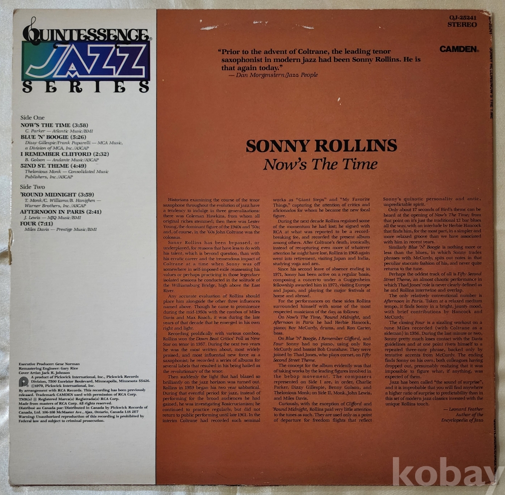 이 음반은 소니 롤린스 캐나다 초반 음반 입니다