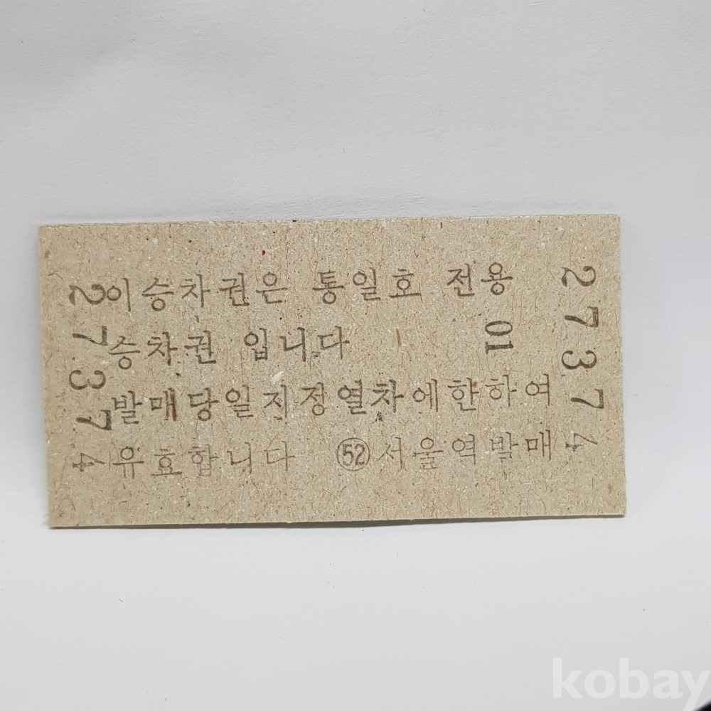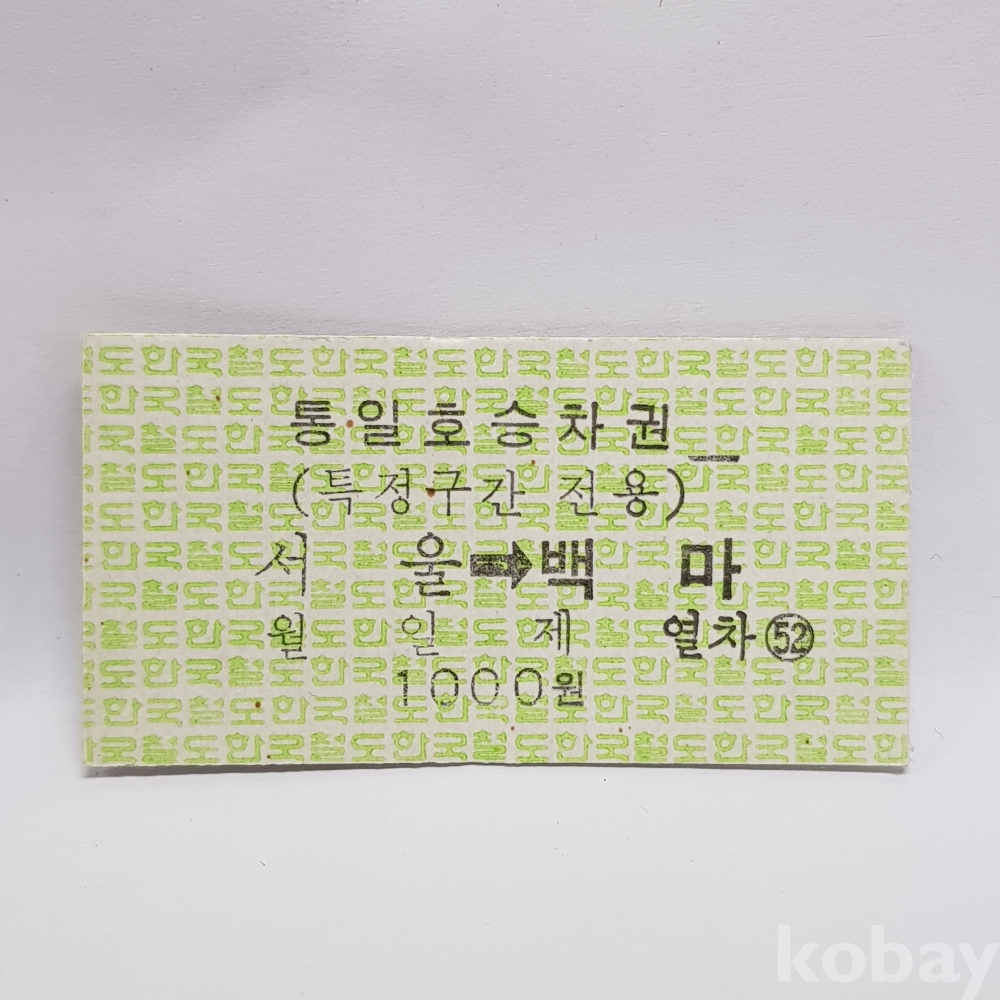 - " 서울 ▶ 백마 " 미사용 통일호 승차권(특정구간전용) 1000원