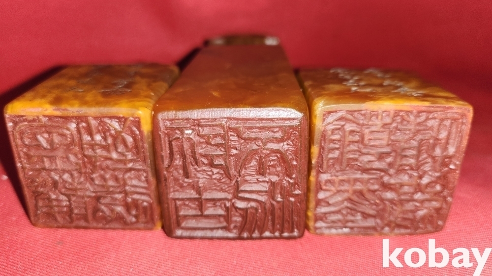 3개의 도장 외부에는 임신년 호백산인(完白山人)의 각(各)이 있어서 당대의 도장주인을 대변합니다, 호백산인(完白山人)은 중국 청나라의 화가이자 서예가인 등석여(鄧石如)의 호입니다.