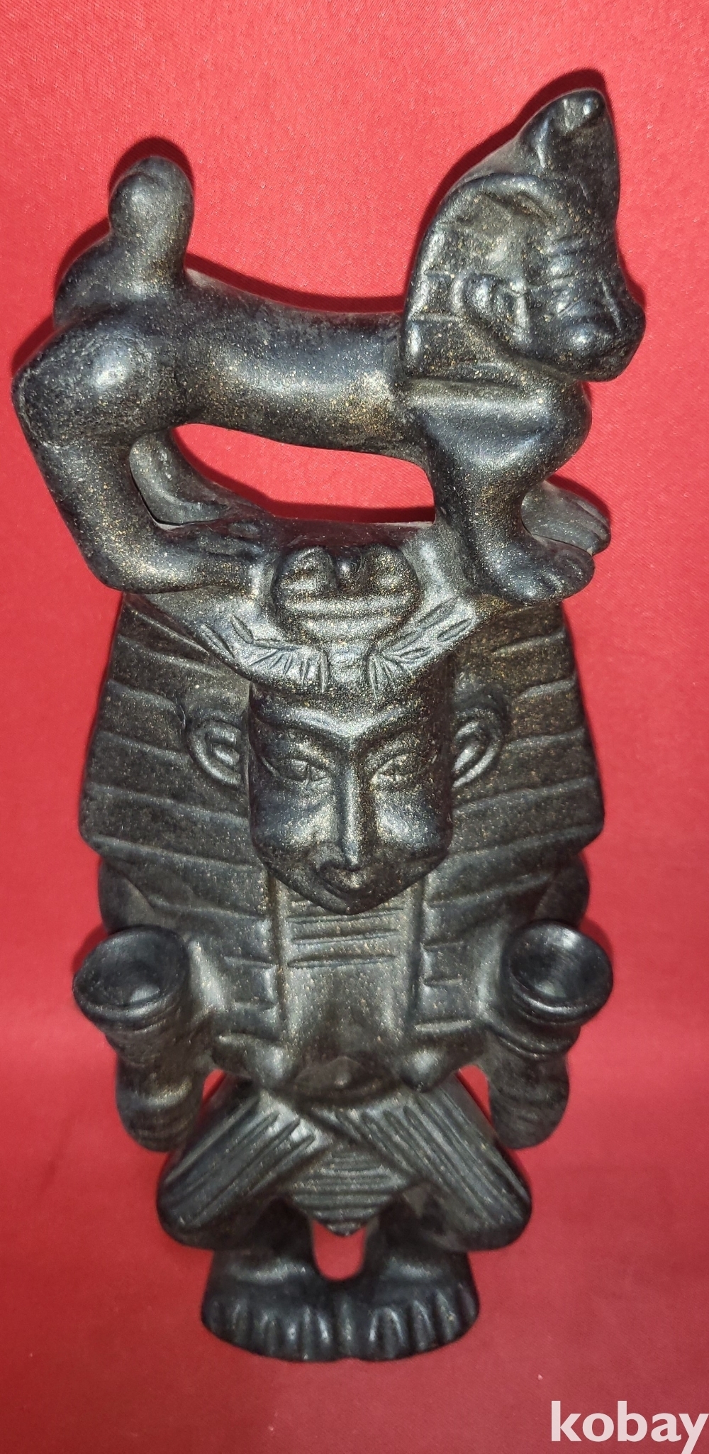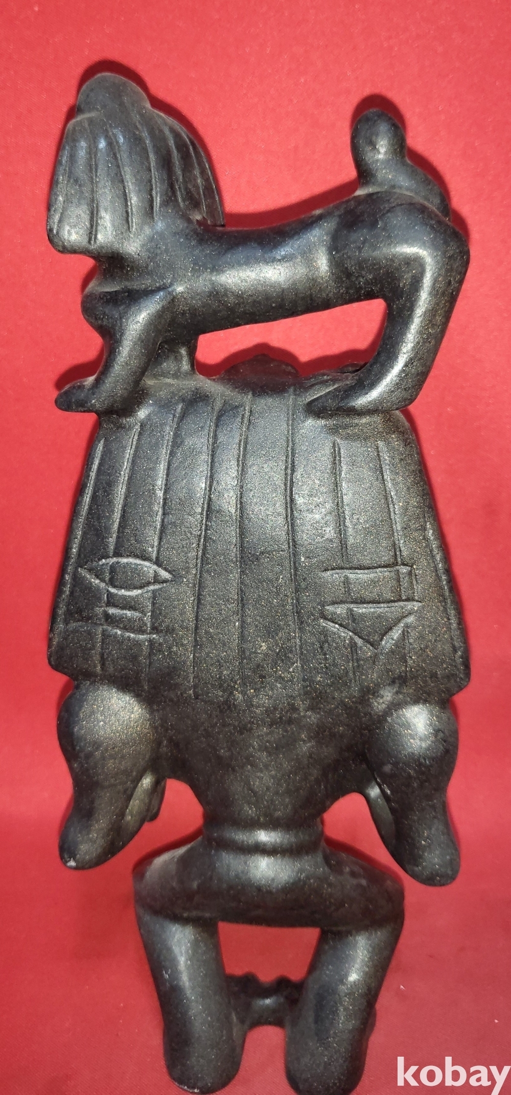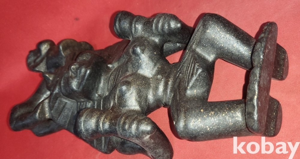 옥중에서 강도가 가장 높은 흑옥(黑玉)으로 만든 사람 위에 올라 탄 동물상으로 크기가 큰 조각품입니다,