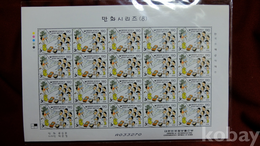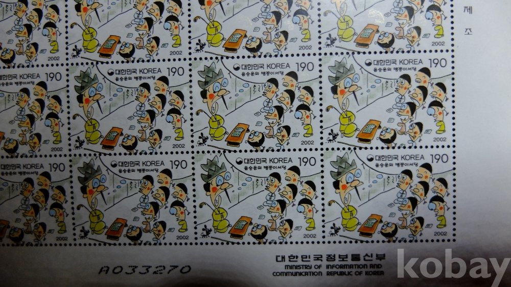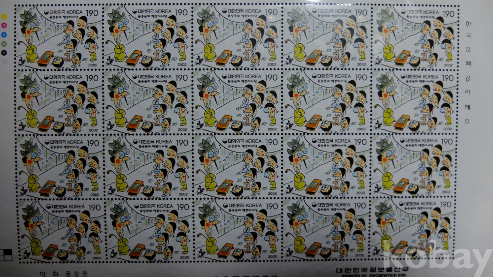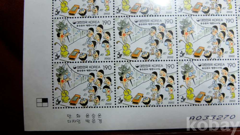 윤승운 맹꽁이 서당 만화 시리즈 우표 만화우표 한국 유명 만화작품 만화가 전지 우표 고전만화 한국 조폐 공사 제조 디자인 박은경