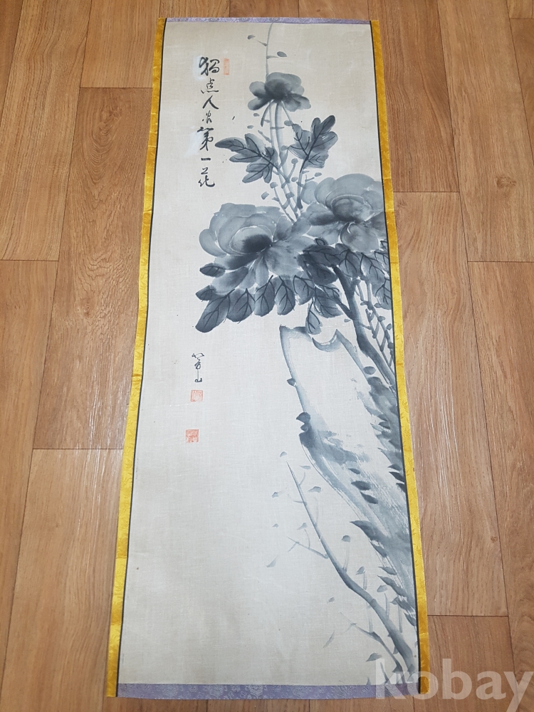 빙산 임석이 보드라운 천바탕 수묵화 1점 입니다