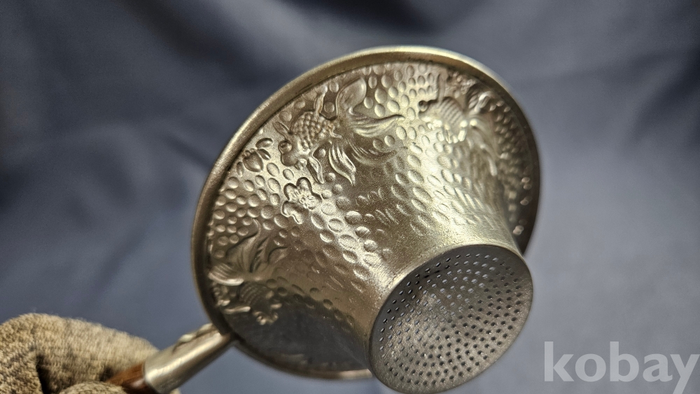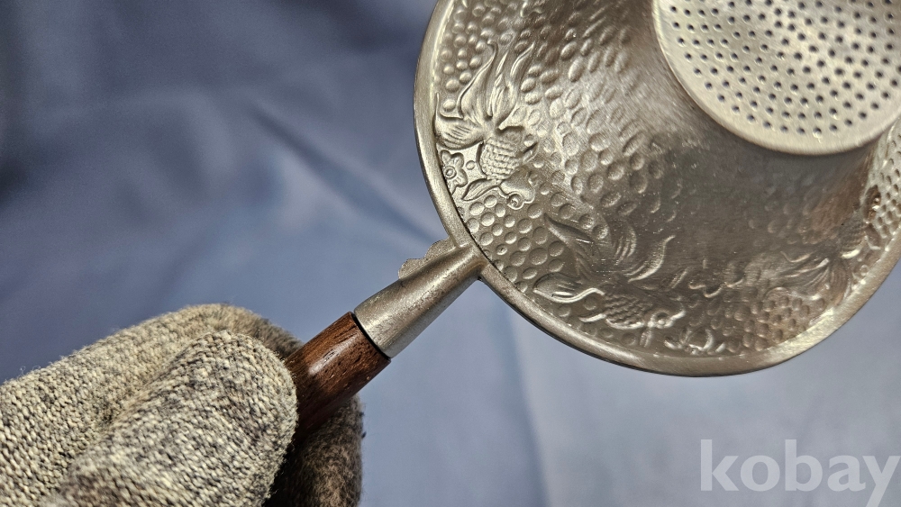 손에 힘을주면 우그러지기도 하는 변형이 되는 주석재질로 보여집니다.