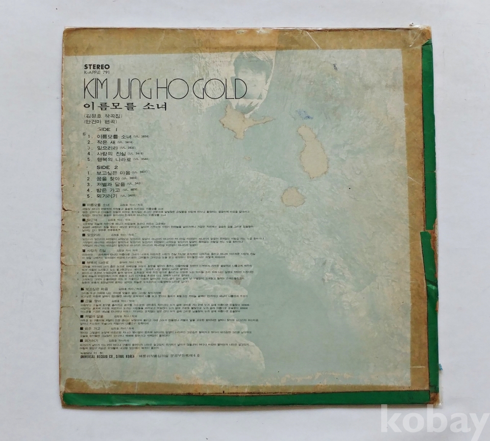 | 자켓상태 | VG : 주름, 접힘, 모서리 찢김 다수 | 음반상태 | EX : 재생에 영향 없는 가벼운 기스 존재 | 발매정보 | 알수없음 | 가사지여부 | 무 |
