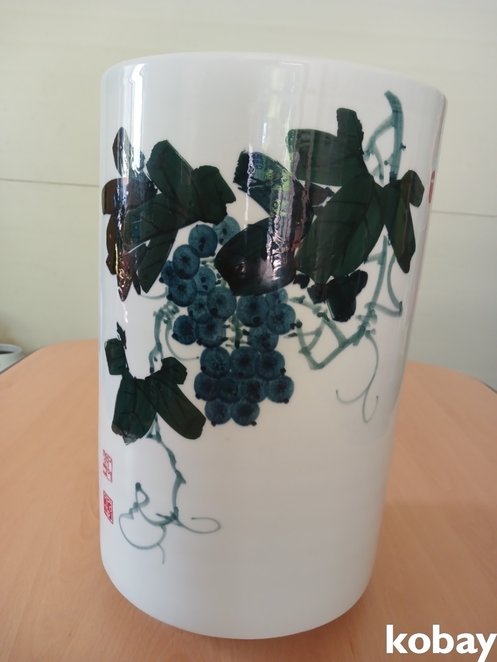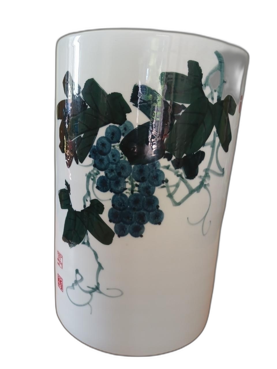 포도가 표현되어 있는 필통/지통 도자기 입니다.