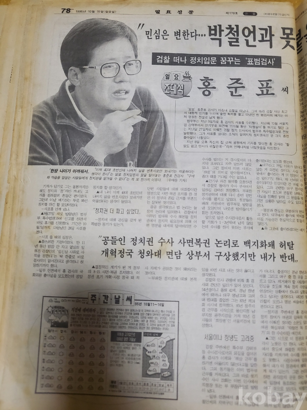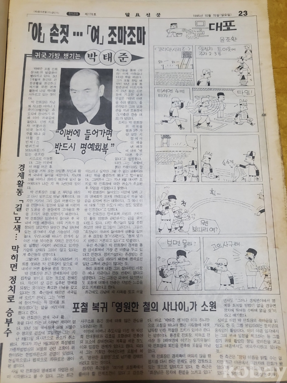 1. 일요신문 제178호(1995년 10월 15일), 일요신문사, 80쪽, 상태 상, 사진 참조