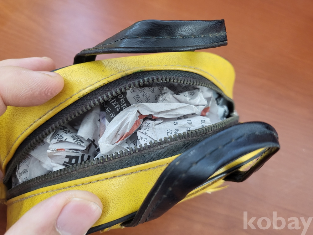 노랑색 해태에서 나온 아카시아껌 손가방입니다