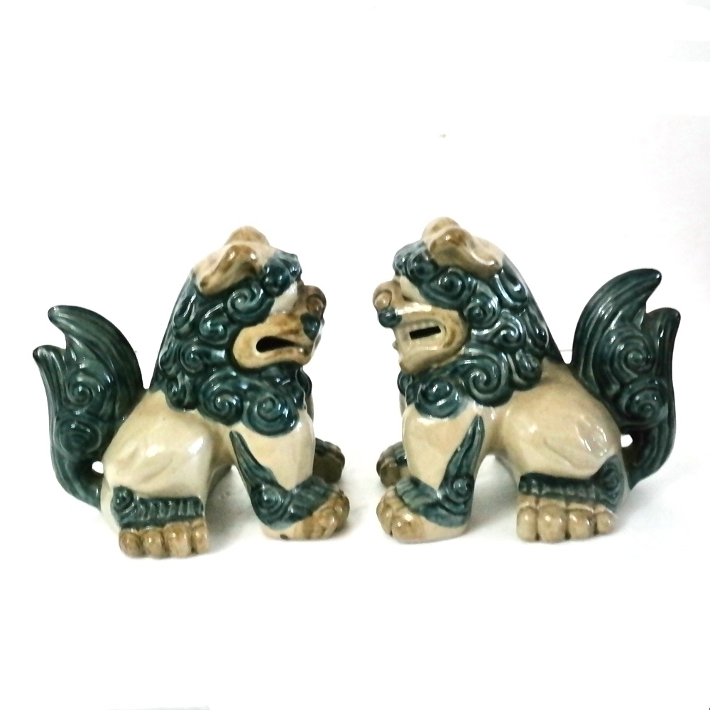 도자기로 만들어진 골동품 재현작 해태 한쌍 입니다