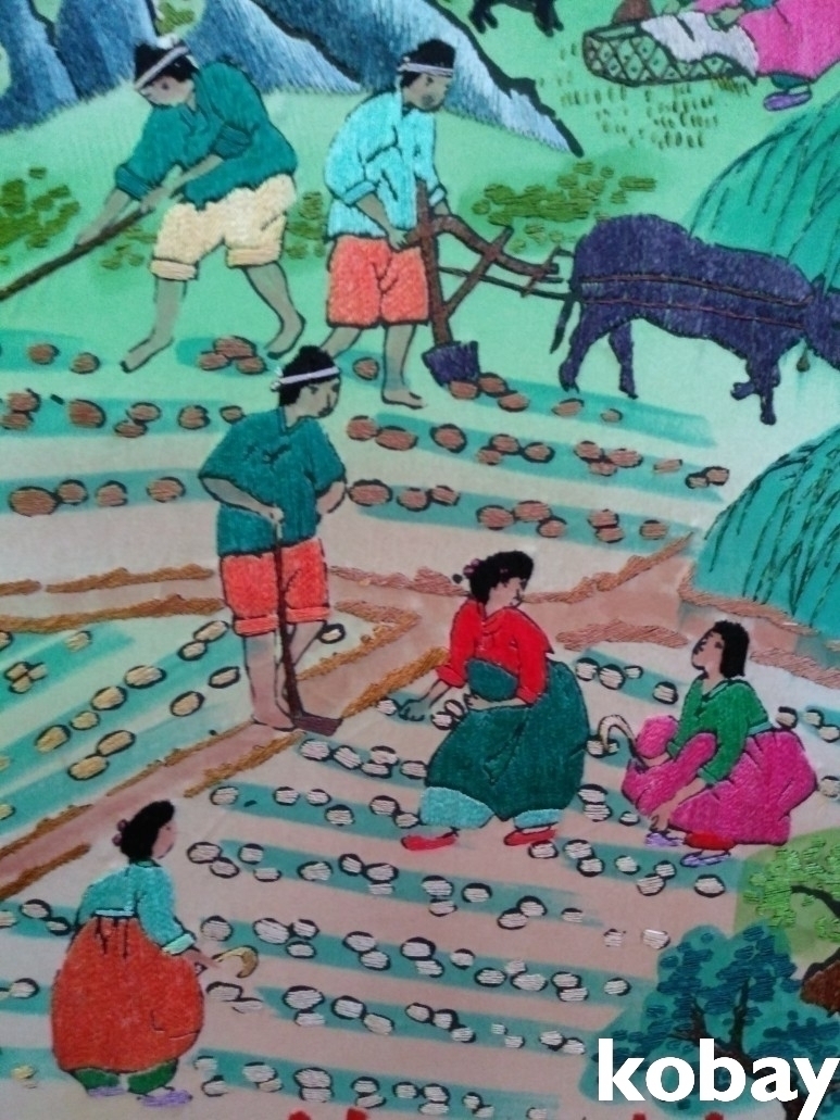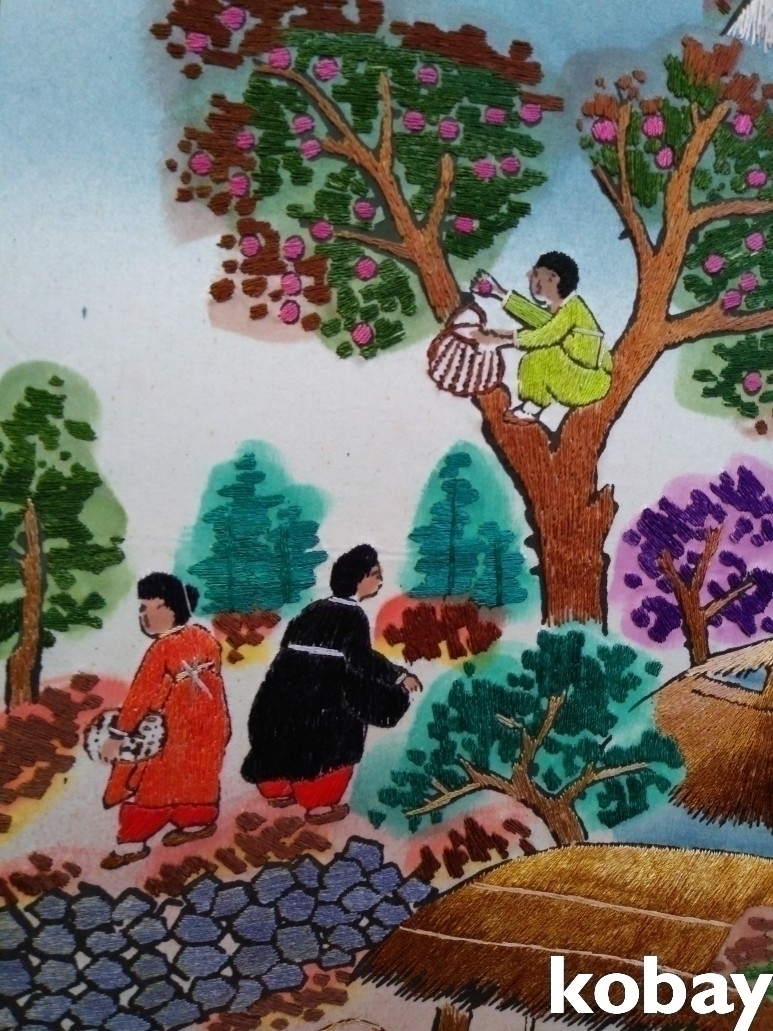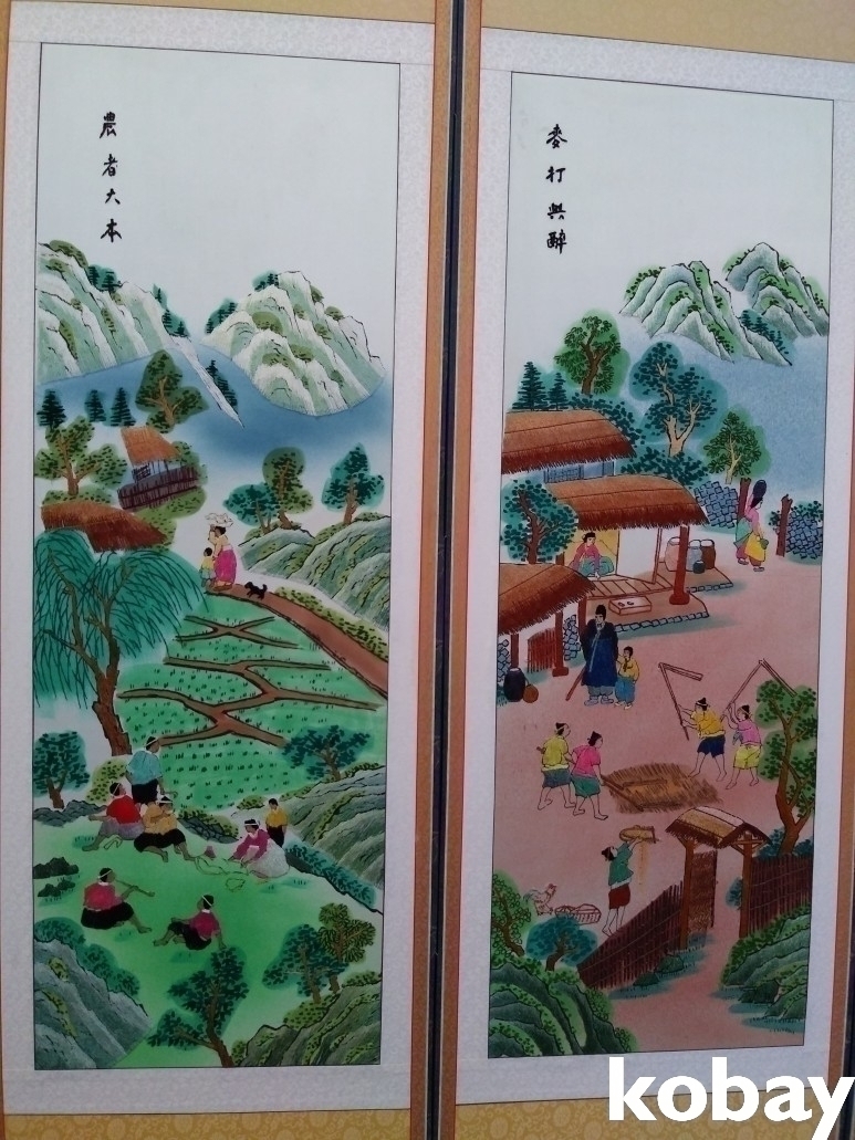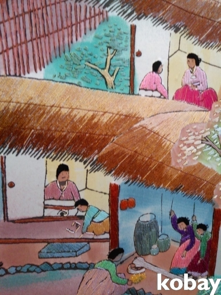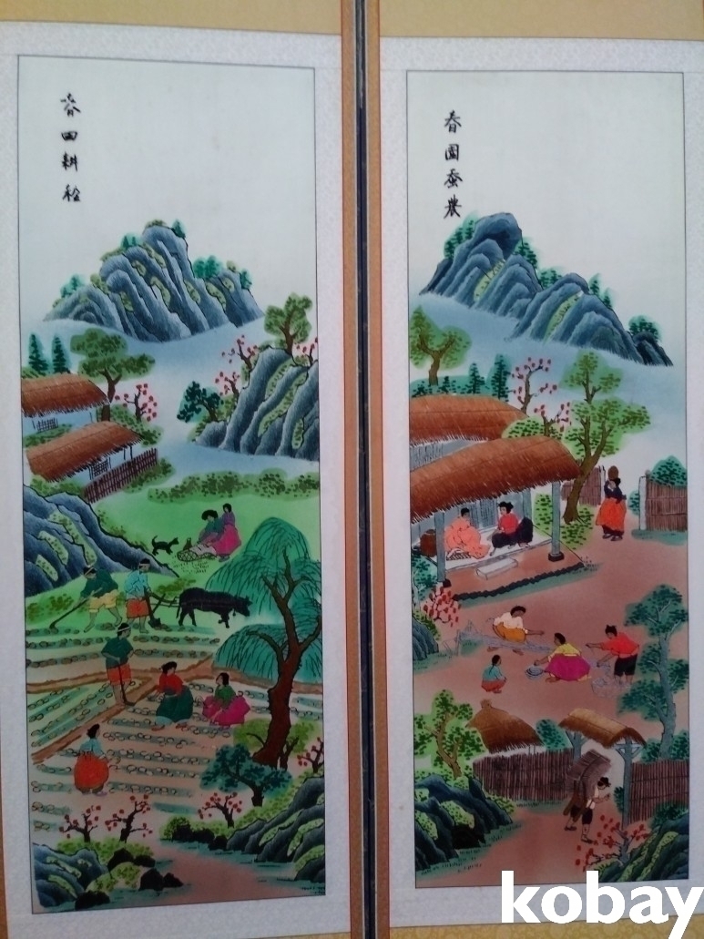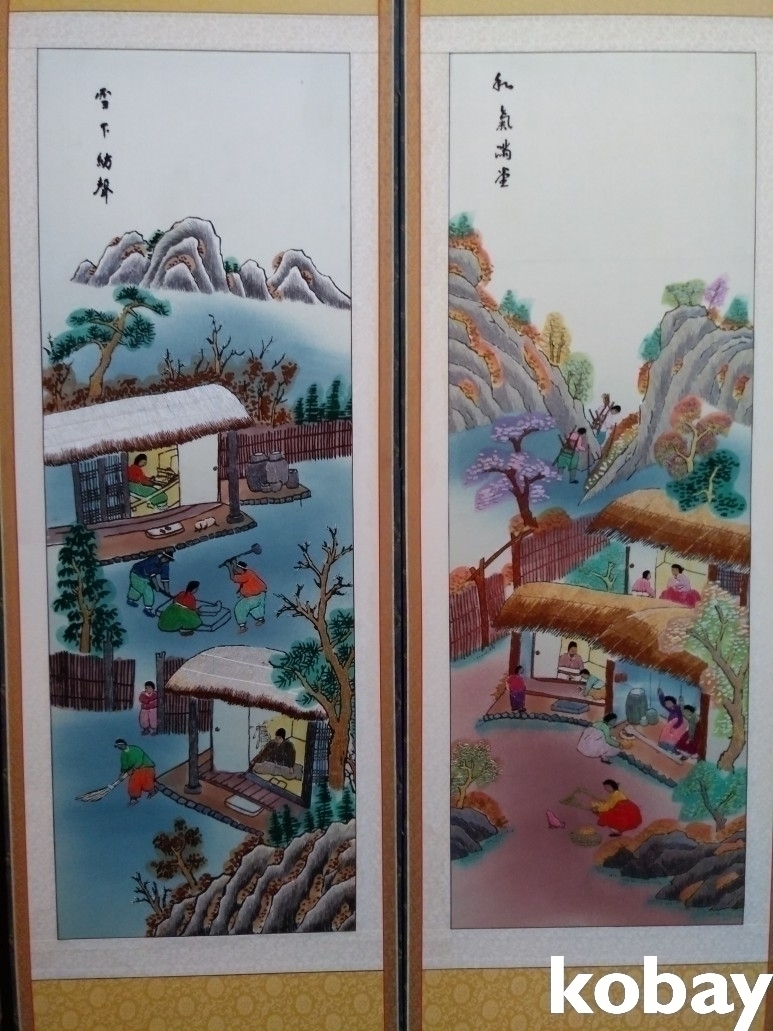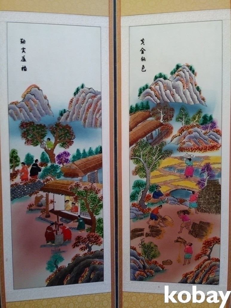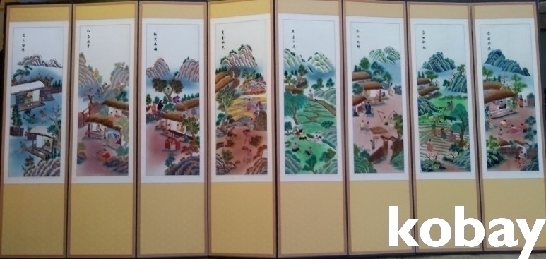 민속 풍경을 아름답게 표현한 자수 8폭 병풍 입니다.