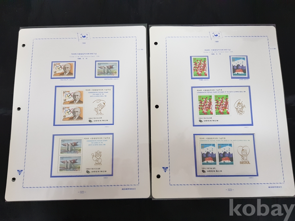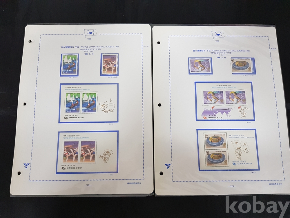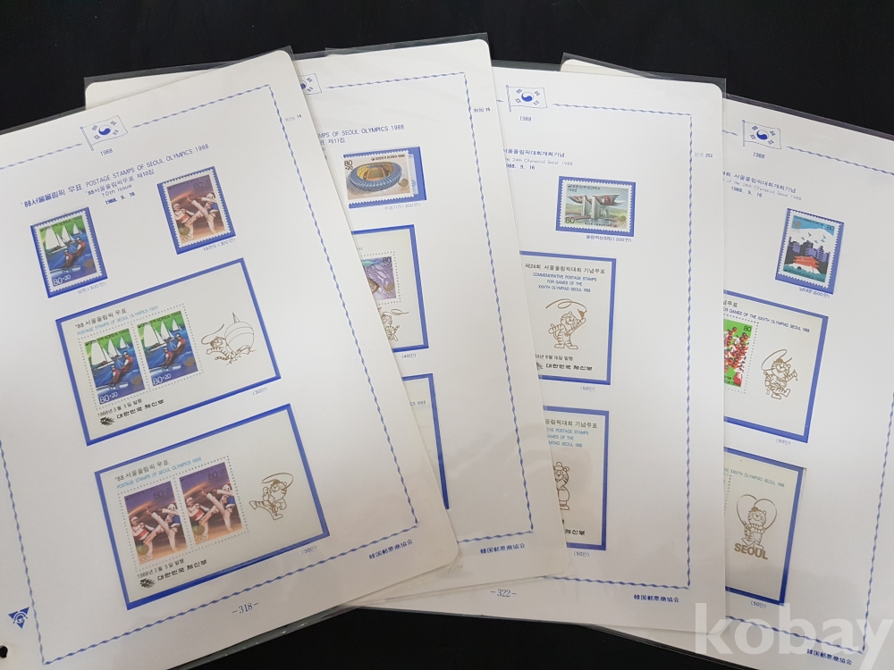 - 88서울올림픽 시트,우표 세트 / 1980년대~ 한국우표앨범 3번부터의 우표책 앨범해체분