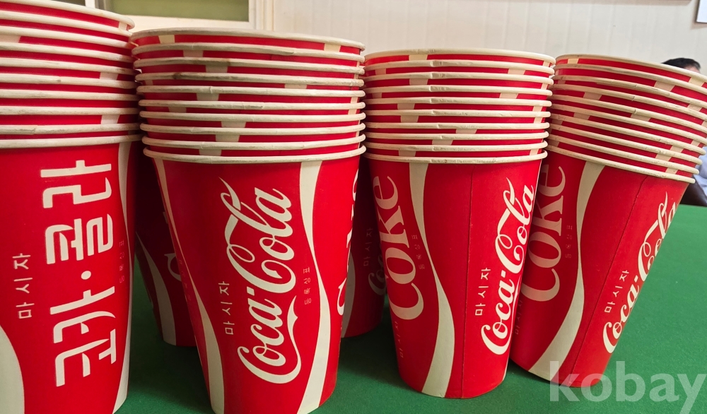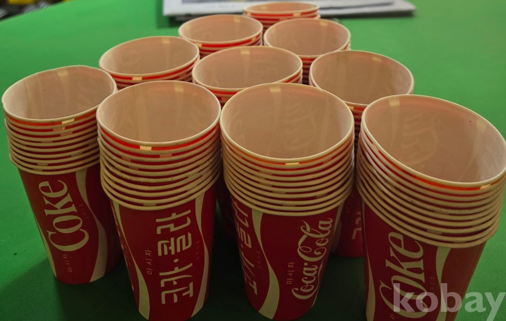종이코카콜라컵.안에는 약간 매끈매끈합니다