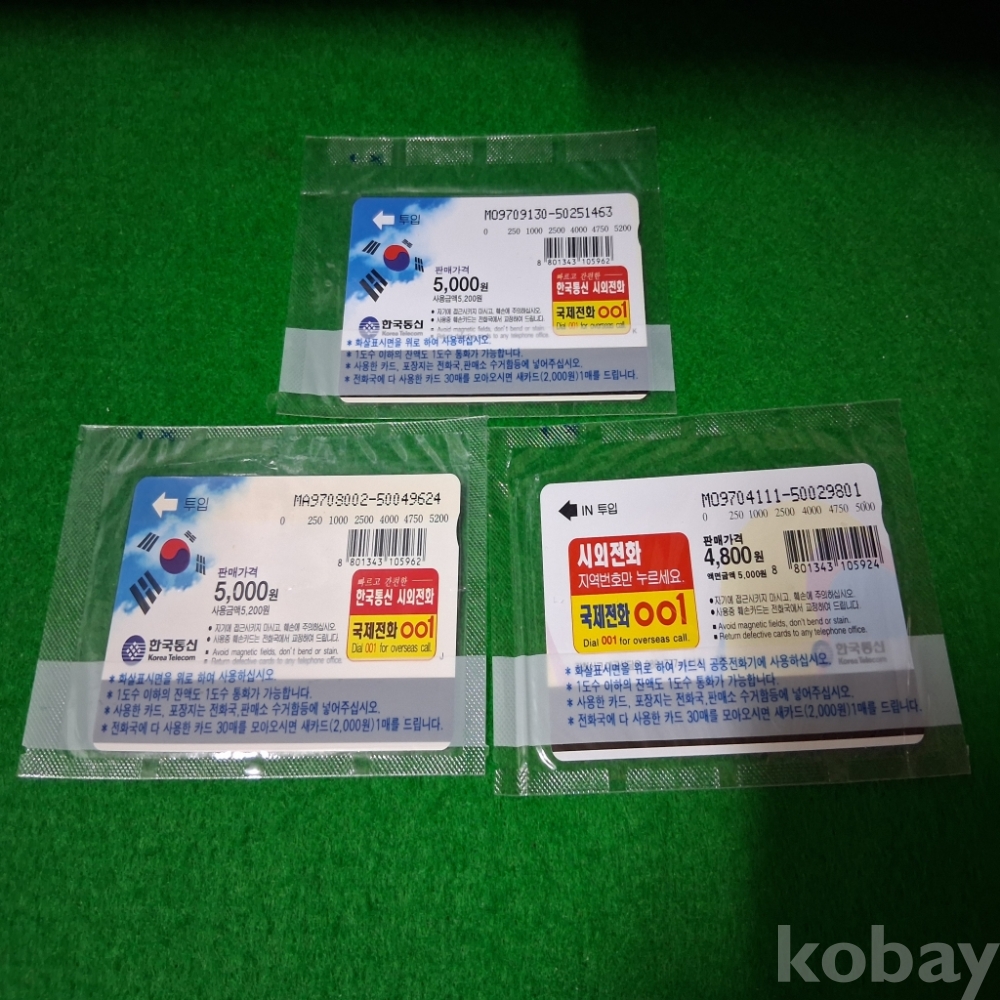 미사용 전화카드 액면가장당5000원