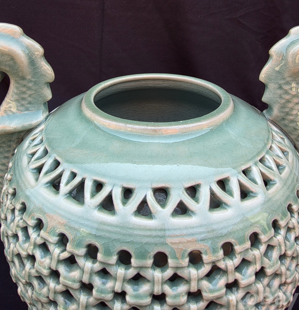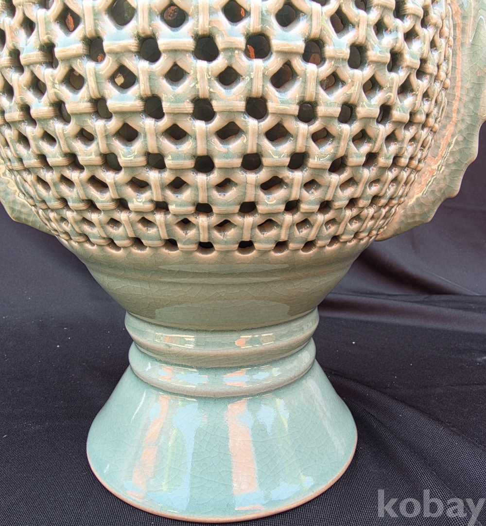 도예가 "해암(海岩) 조재호" 청자투각양이호 靑磁透刻兩耳壺