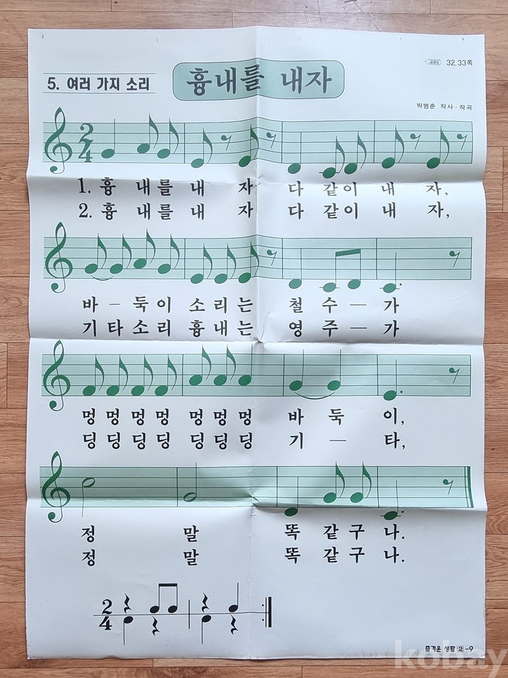 K-21 / 옛날 학교 수업용 학습 자료 / 초대형 악보 괘도 포스터 (양면)
