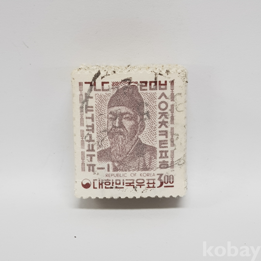 1962년 새 원화 세종대왕 3원 보통우표 일부인 미확인 사용제 우표 약 100매 묶음