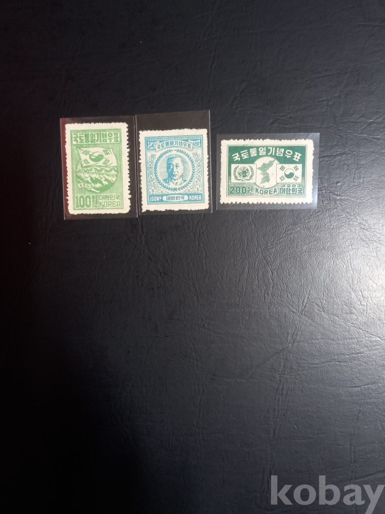 1950년 발행한 국토통일기념 우표(3종완)입니다