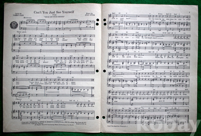 (오래된 피아노 악보) Can't you just see yourself? - 미국발행...