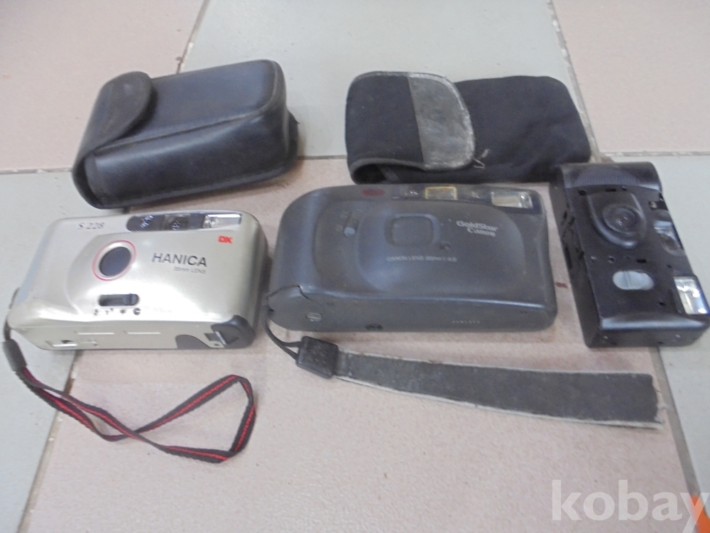 깨끗한 카비집있는 골드스타개논 필림카메라1대와 하니카 카바집있는 특수늄무로만든 깨끗한 필림카메라 1대와 외작은카메라1대 총3대
