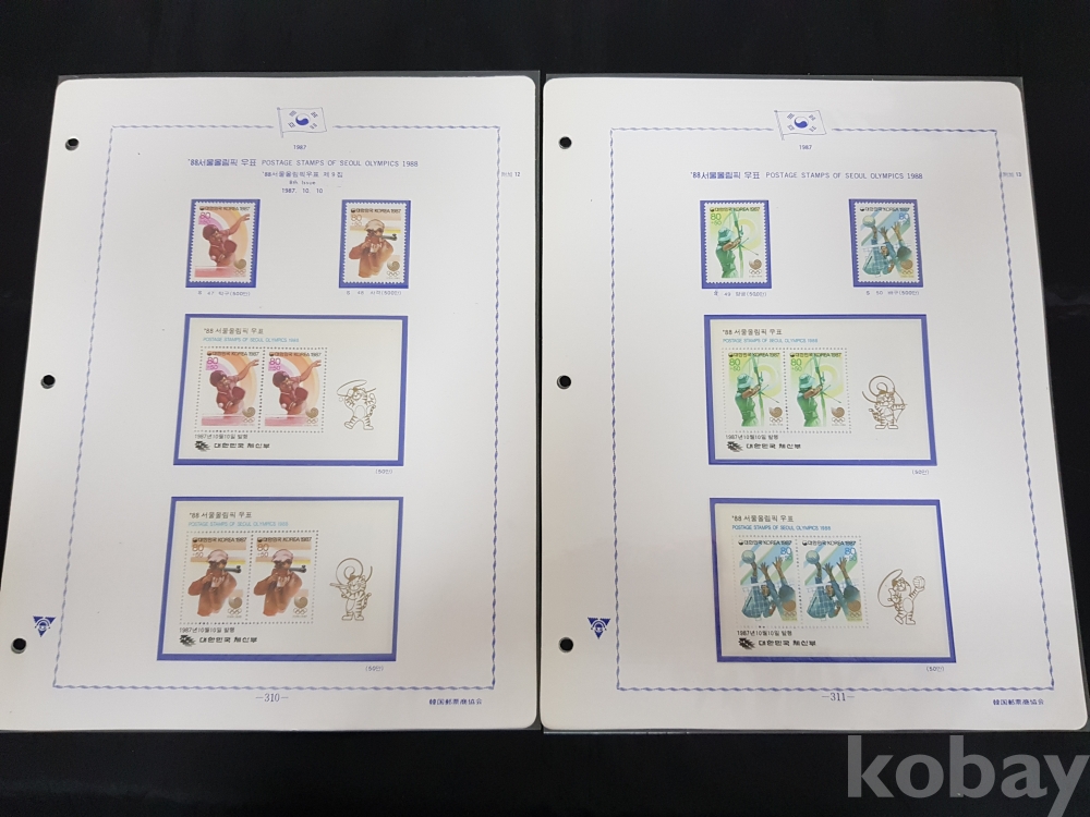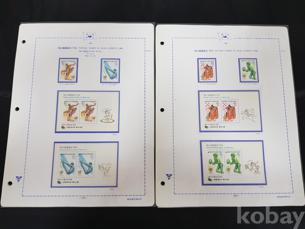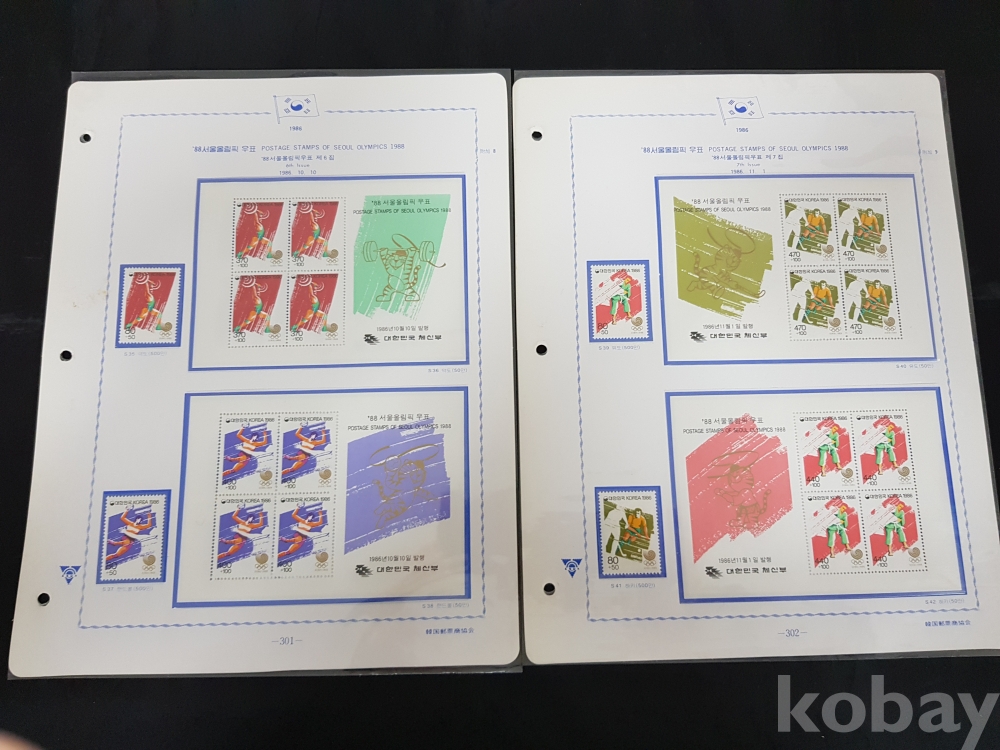 - 88서울올림픽 시트,우표 세트 / 1980년대~ 한국우표앨범 3번부터의 우표책 앨범해체분
