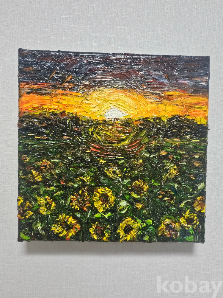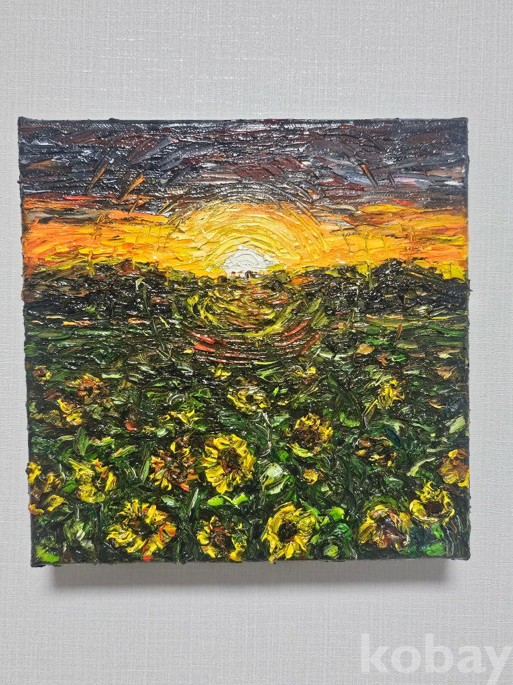 (원화) 캔버스 유화그림 해바라기꽃 풍경 그림