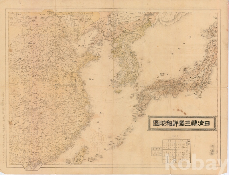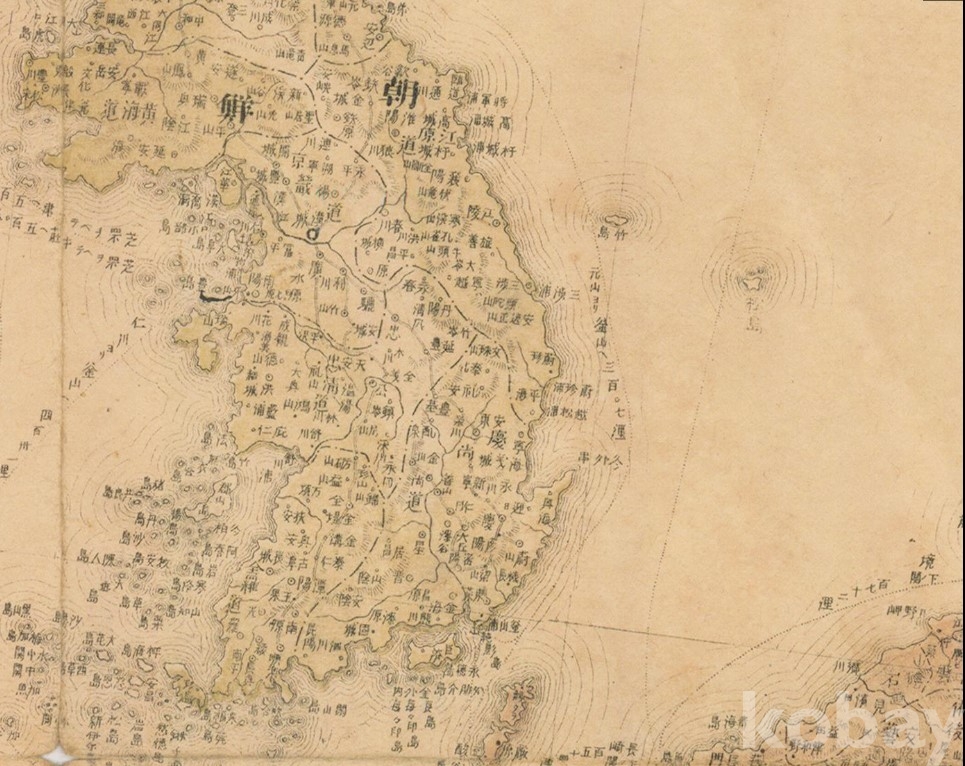 울릉도와 독도가 조선영토와 채색을 같이 하고 일보영토의 선홍빛 색상과는