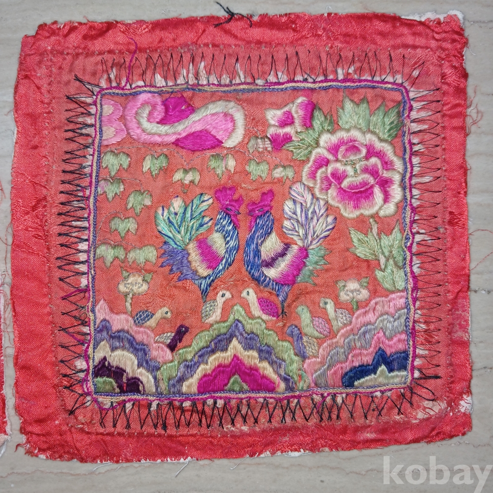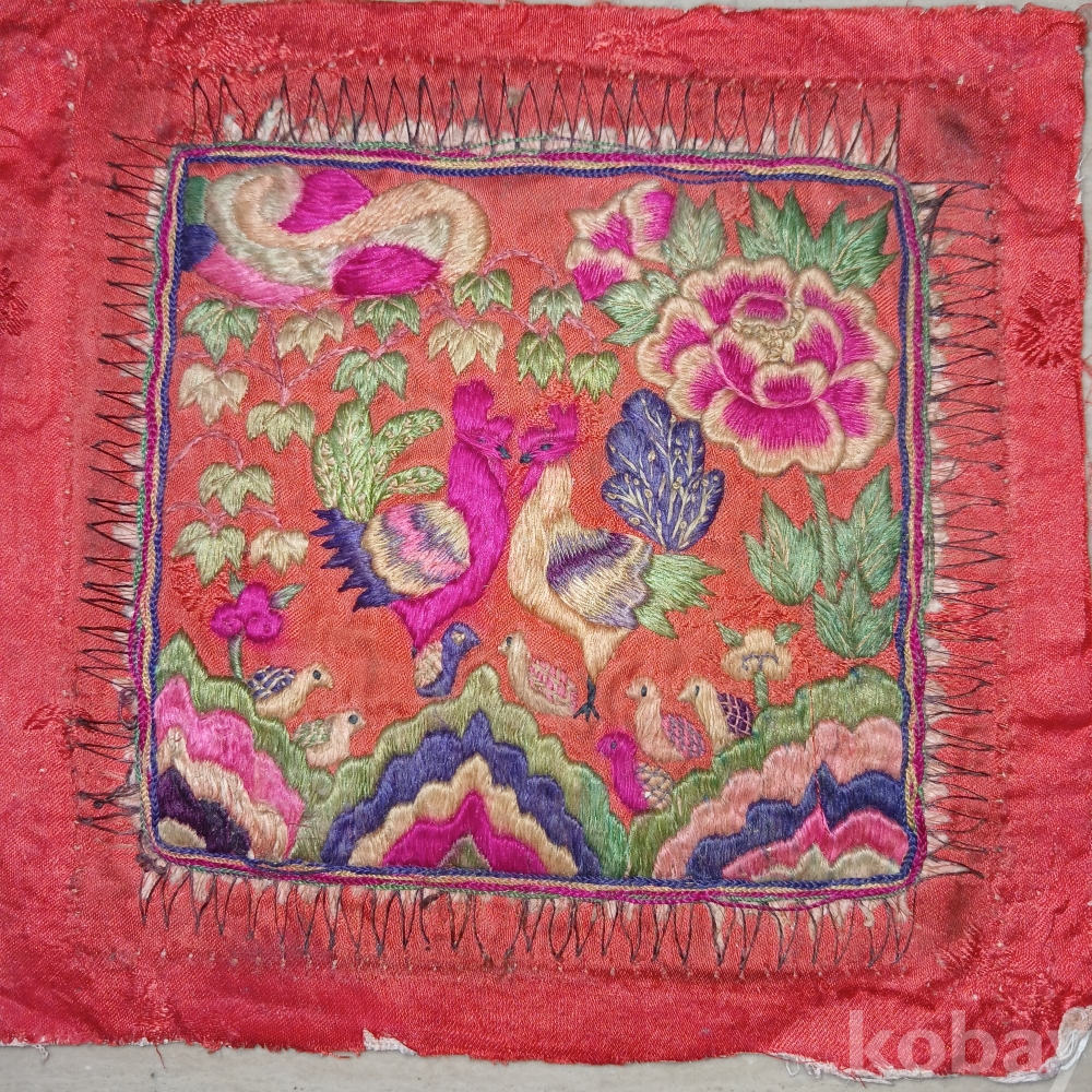 9마리의 봉황ᆢ 암 수 한쌍과새끼 7 마리 ᆢ 가장합리적 가족 구성으로 본 숫자입니다 구봉침이라 합니다 이작품은 상부세 목단을 넣어 부귀까지 염원 했군요ㆍ해방공간의 유물입니다