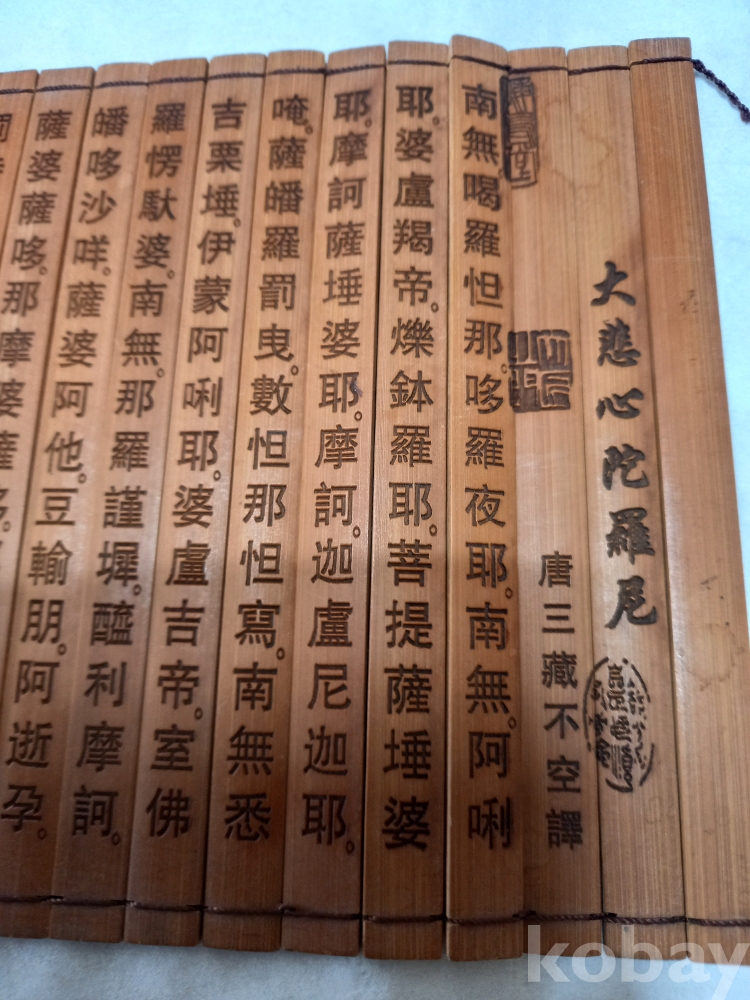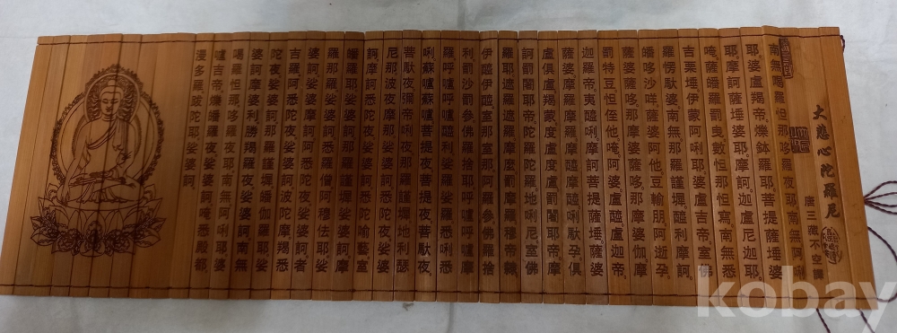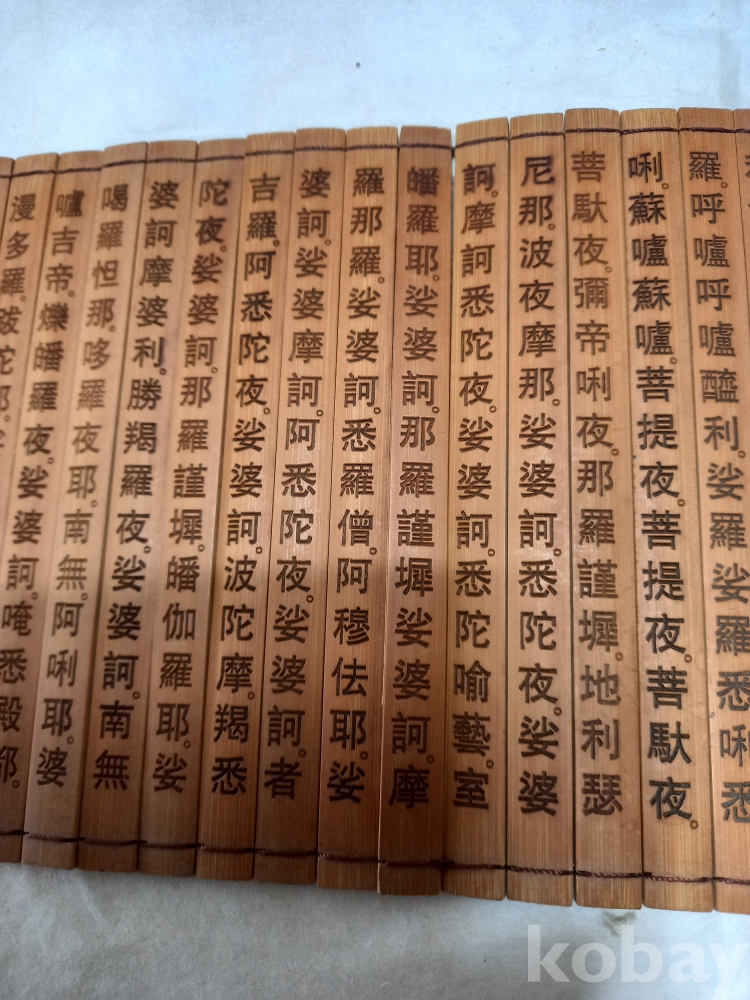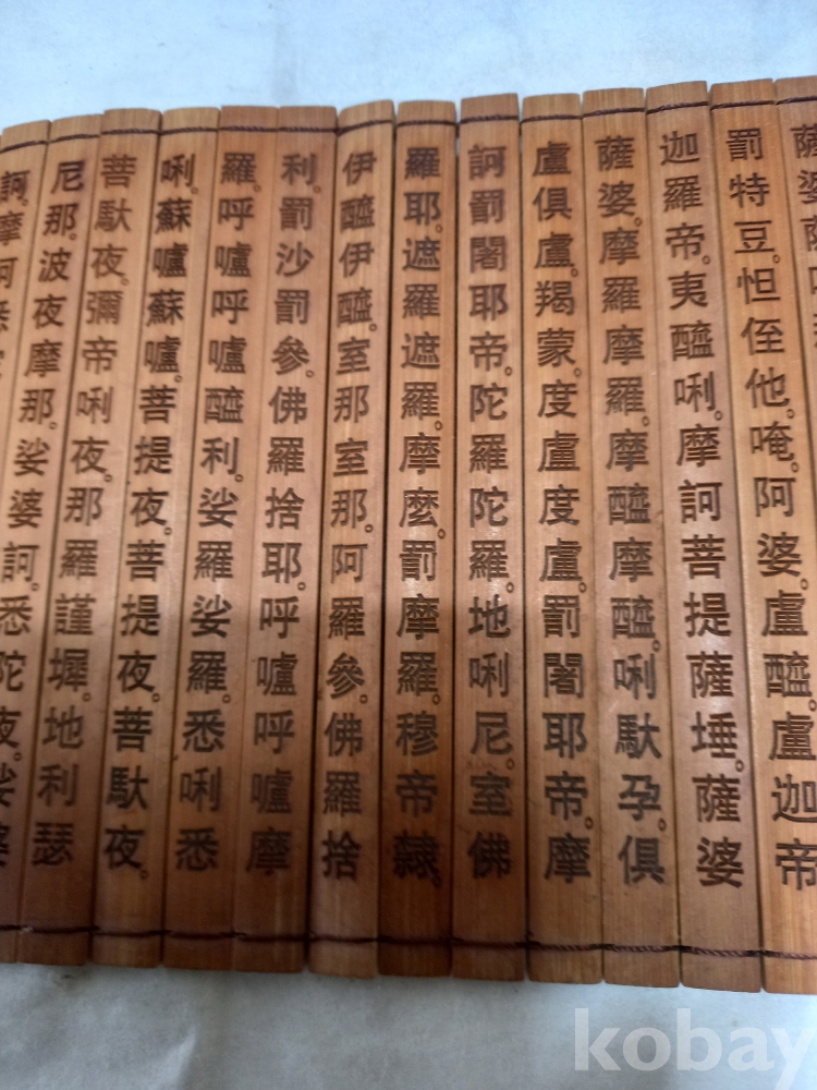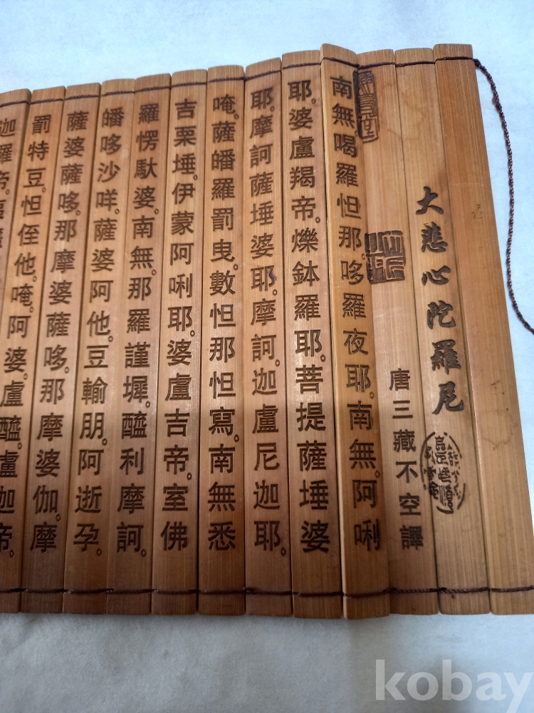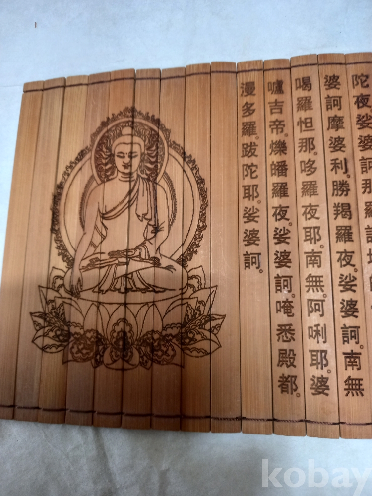 상태 a급 음각으로깊이조각된 불경 에 불화를 대나무에 각한 것입니다 근래작으로 보이나 조각하기어려운 내용이라 생각됨니다 희귀 기물 입니다