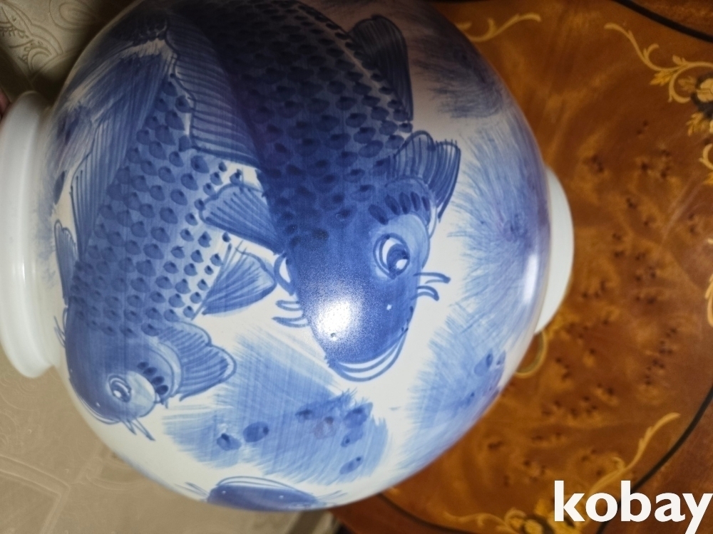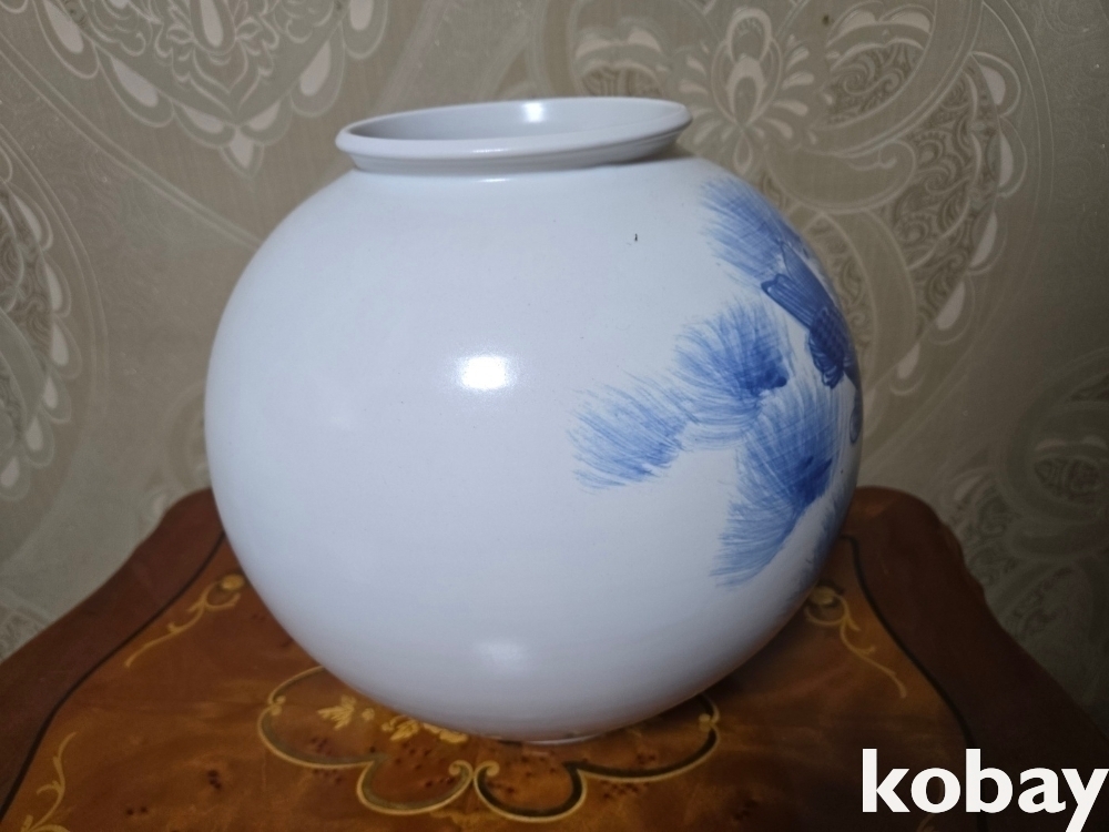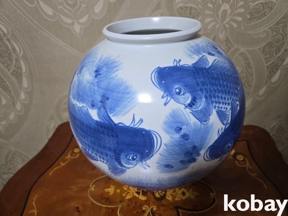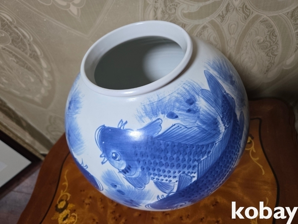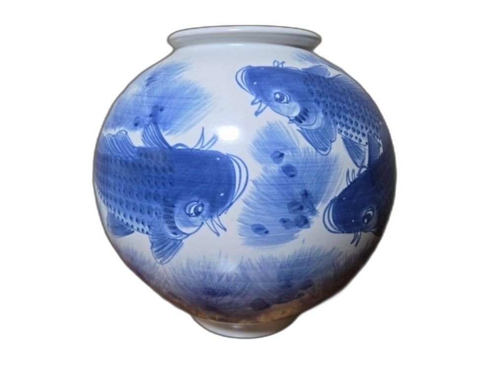 물고기 세마리가 표현된 달 도자기 입니다.