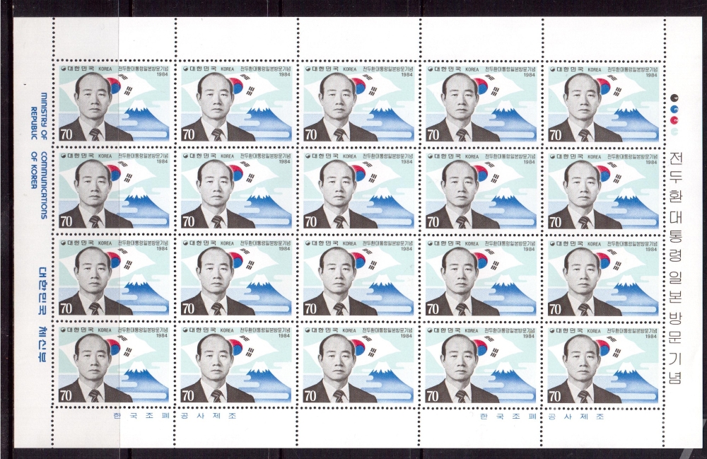 (한국전지) 1984.9.6 전두환대통령 일본 방문 sheet of 20 MNH