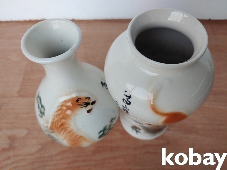 호랑이가 있는 주병 매병 도자기 2개 입니다.