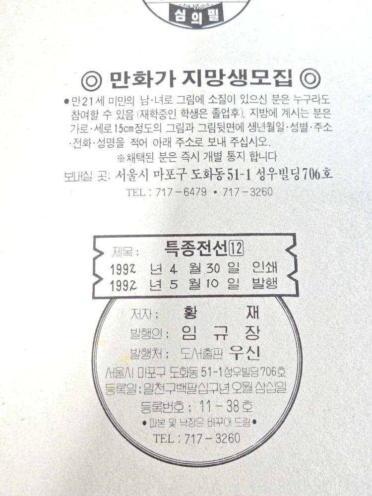 80-90만화방 ==청소년 만화 / 흑나비 프로 작품 == 황재 글.그림 = 특종전선== 12권 완질