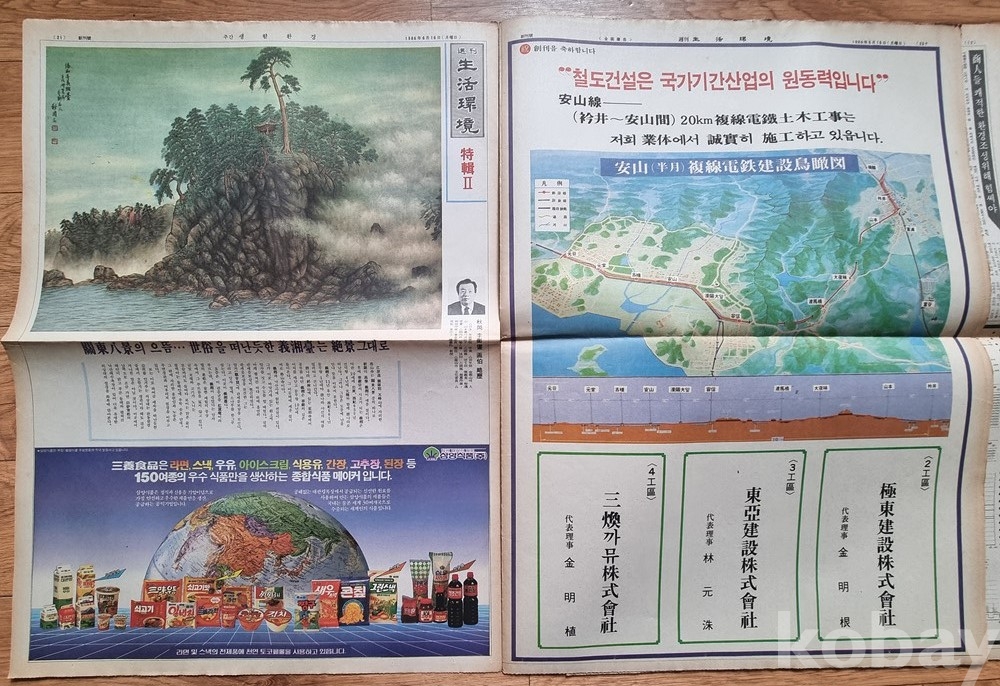 특집 부록: 한국의 산하를 담은 컬러 특집 면(錦繡江山) 및 안산선 복선전철 건설 조감도 등
