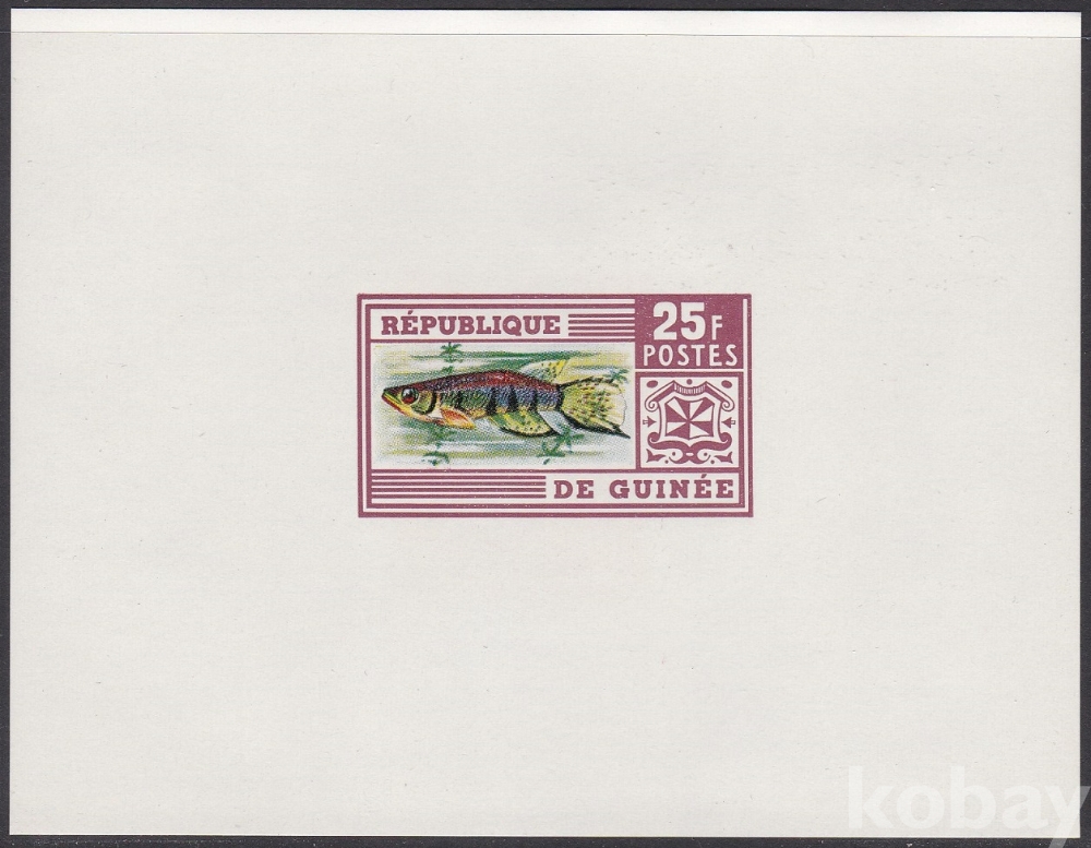 (하늘천) 기니 1962년 25fr, 야생동물, 동물상(動物相), 물고기, 미발행 브라운 마젠타 디럭스 프루프