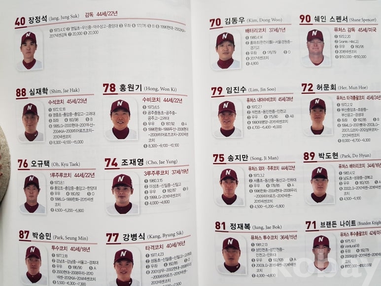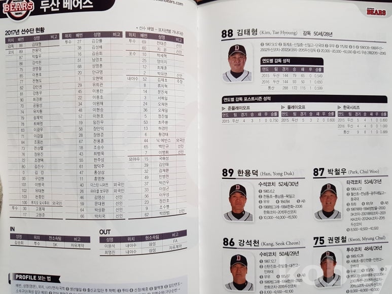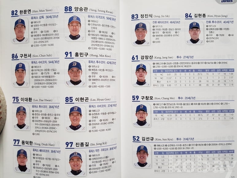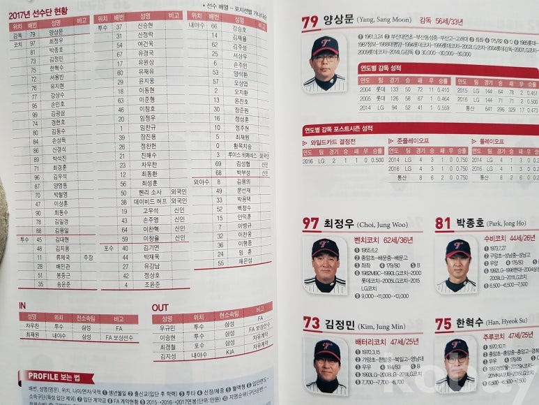 설명: 이 책의 오피셜 가이드북으로 속 내용에는 전 구단 선수 성명. 생년원일. 국적. 배번. 위치. 출신교. 투타. 신장/체중. 혈액형. 입단년도. 계약금. 년봉 등 등 기록 제공된 책입니다.
