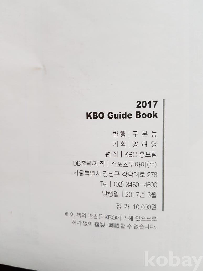 제목: 2017년 KBO OFFICIAL GUIDE BOOK 판매