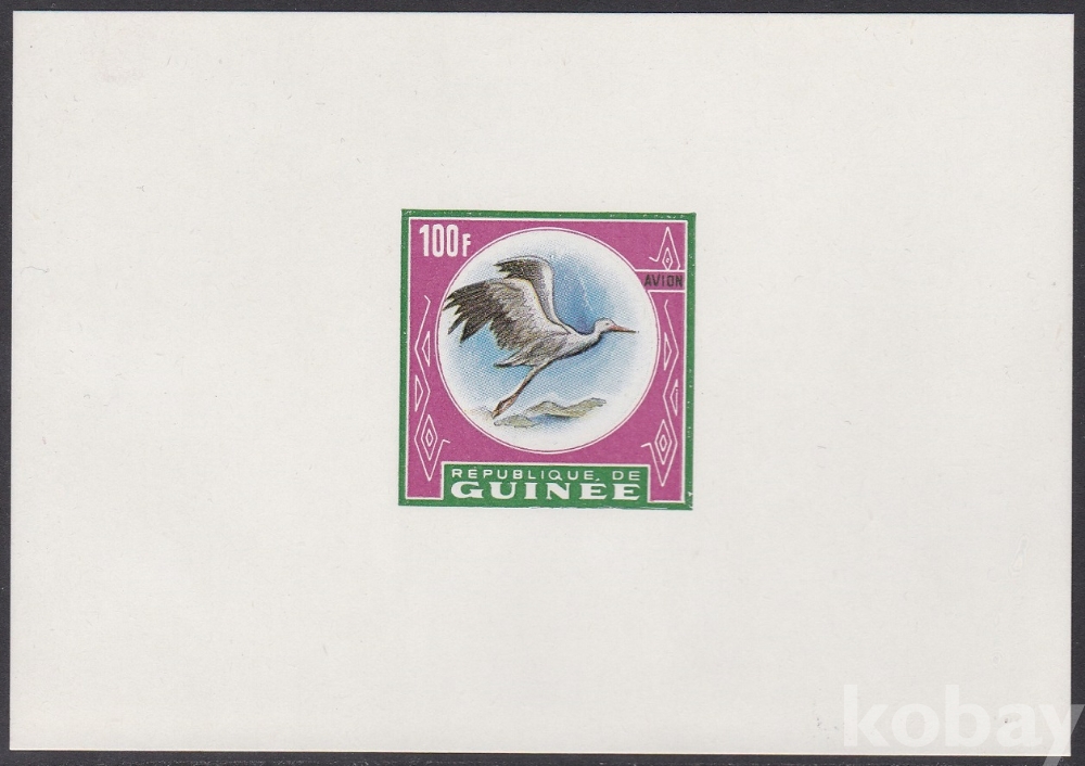 (하늘천) 기니 1962년 100fr, 야생동물, 동물상(動物相), 새, 황새, 미발행 연자홍 디럭스 프루프