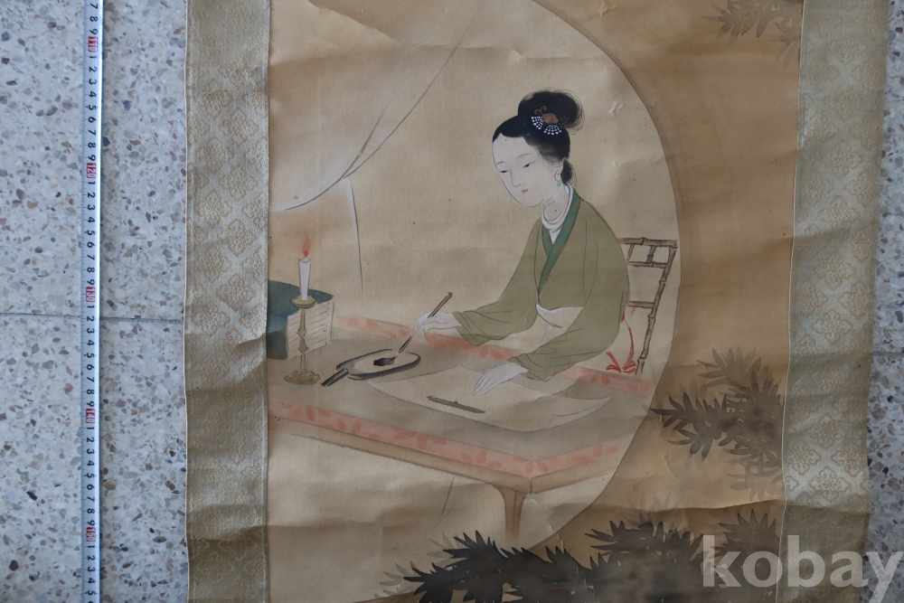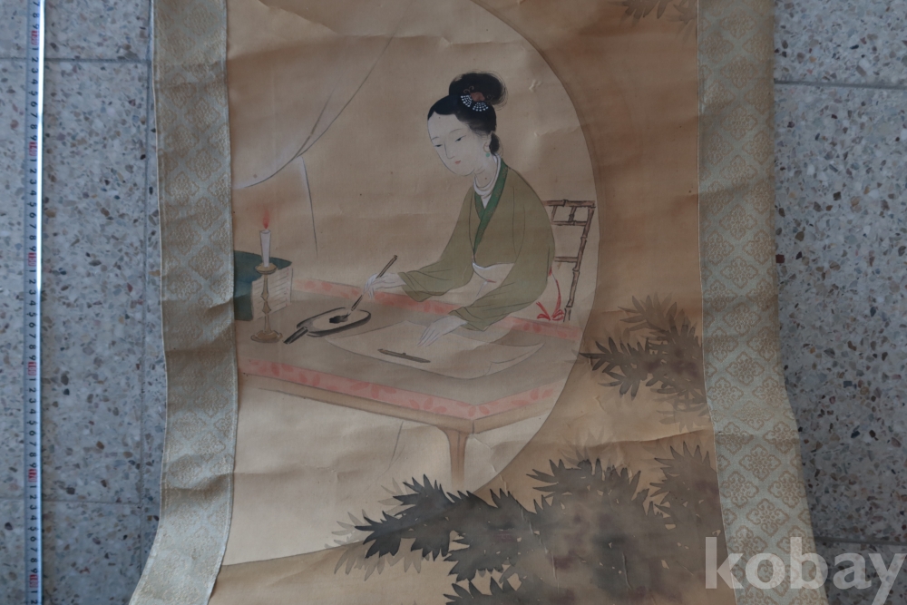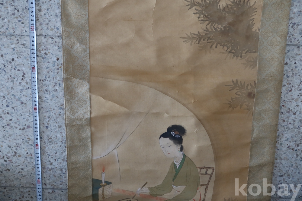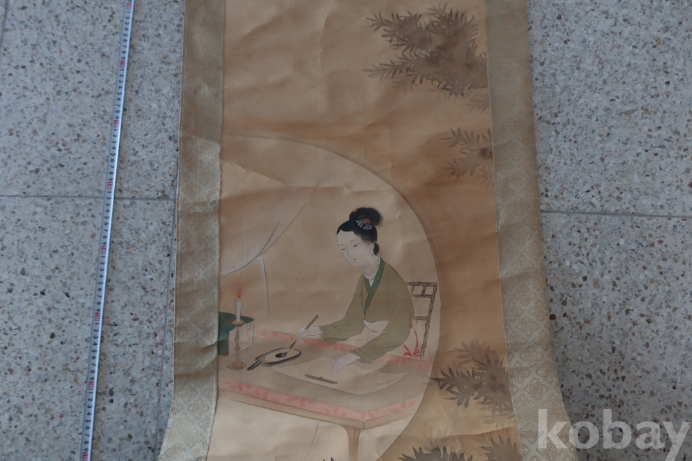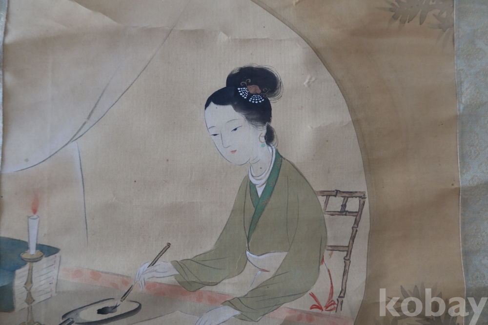 일본 화가의 중국 여성 임니다 1920대 비단화 이며 아름다운 여인의 모습을 멋지게 표현한 명화 임니다 축은 각기 다른것 임니다 사진 참조 하세요