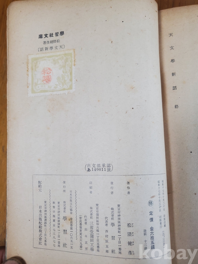 1. 천문학신화(天文學新話), 송농건언(松隈健彦), 학습사, 1943년, 230쪽, 일본판, 상태 상, 사진 참조