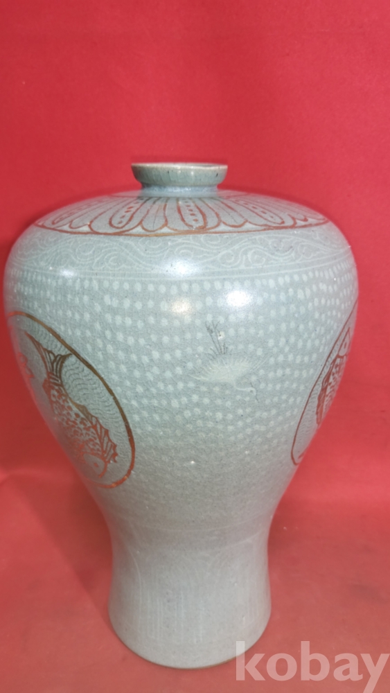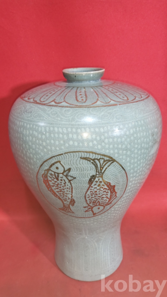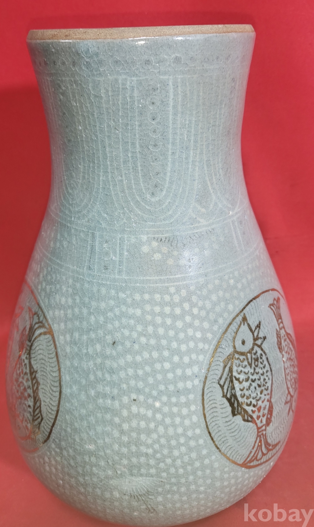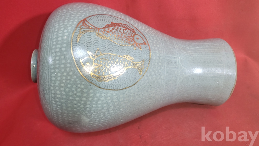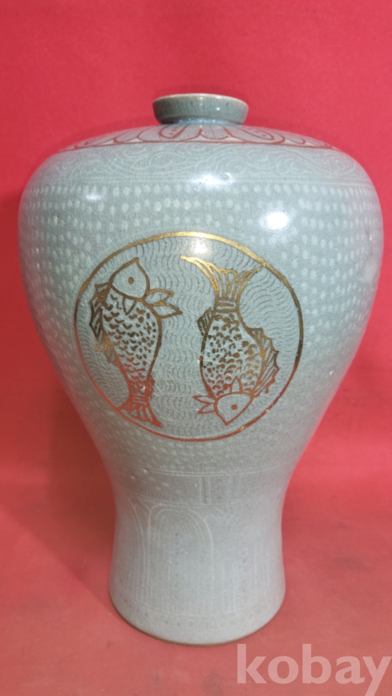 짱짱한 연대 갖춘 금채(金彩) 삼면 쌍어문(雙魚紋) 미감정 매병(梅甁)입니다,