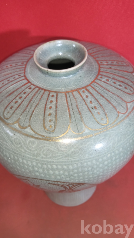 어깨선에도 연판문양이 금채로 시문된 상태입니다,