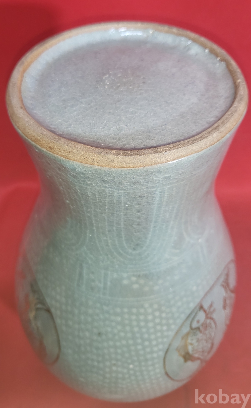 기물의 전체적인 느낌은 고도자기로 보이나 미감정이기에 진위는 알 수가 없습니다,