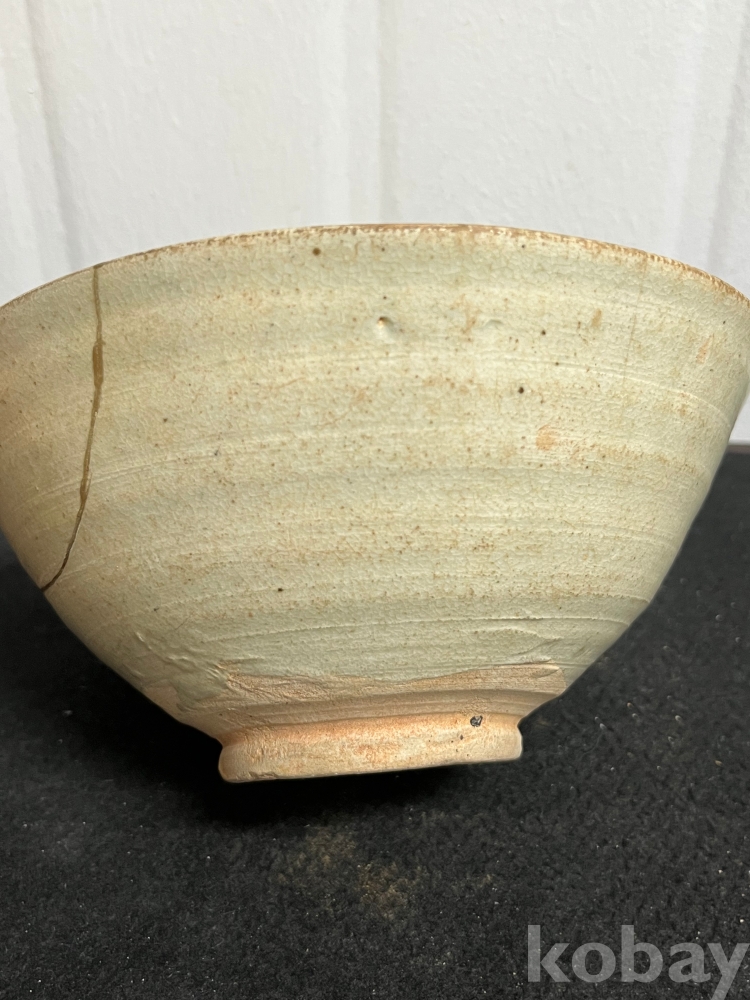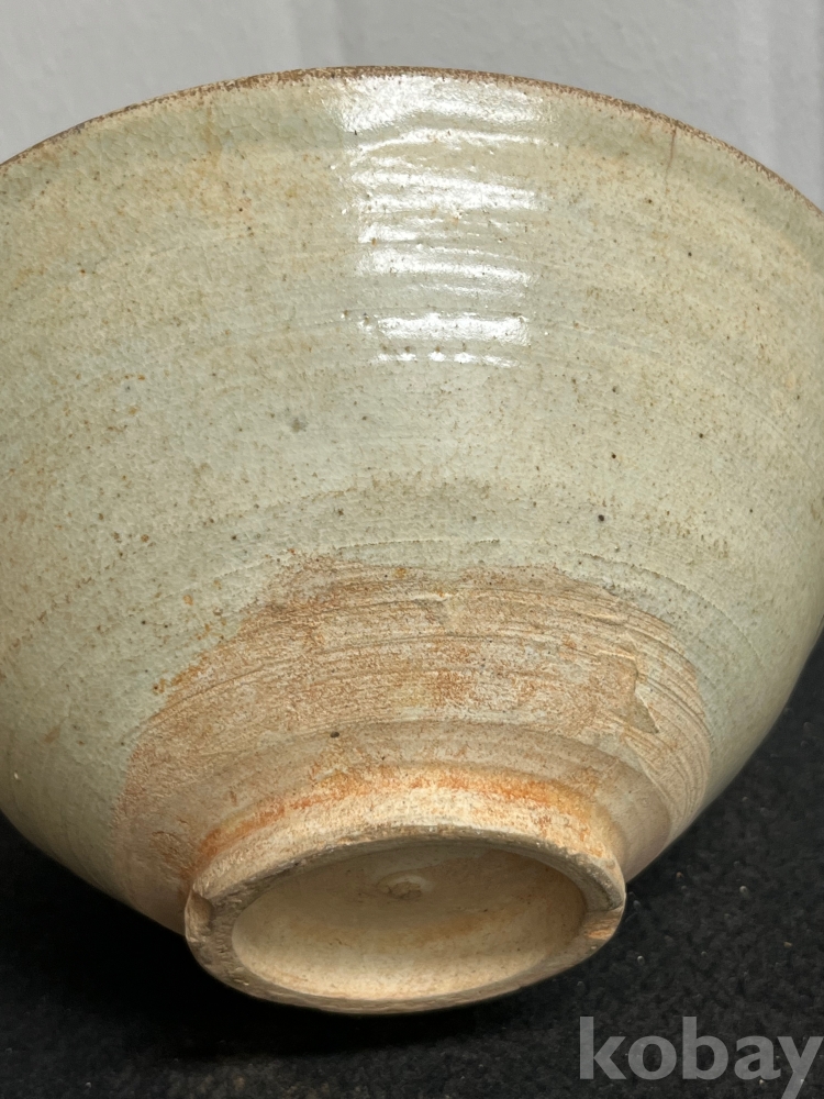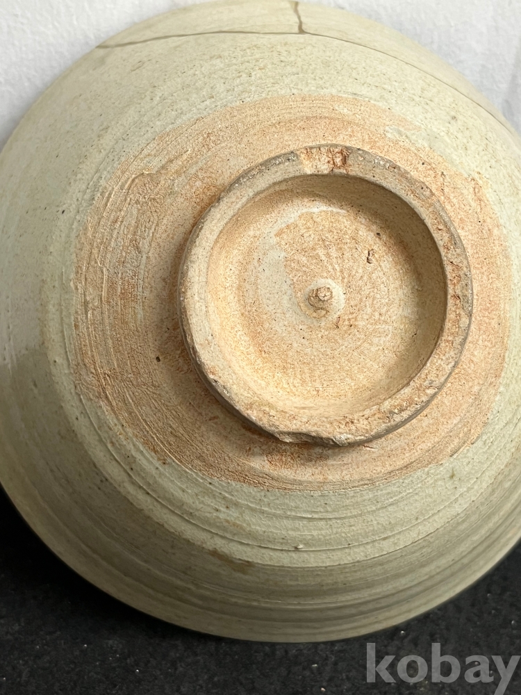 유약위로 은은한 철분 점들과 빙열이 보이며, 내면에는 소성과정에 생긴 받침흔적이 있습니다.