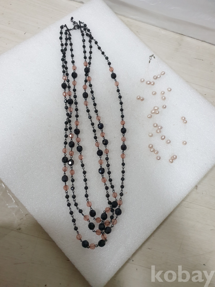 {천원경매} Y-4-0978 검정+핑크구슬 목걸이 외 1개