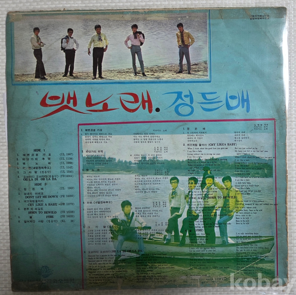 | 자켓상태 | VG : 주름, 접힘, 모서리 찢김 다수 | 음반상태 | VG : 생활 기스 다수, 가벼운 노이즈 존재 | 발매정보 | 초반 | 가사지여부 | 무 |