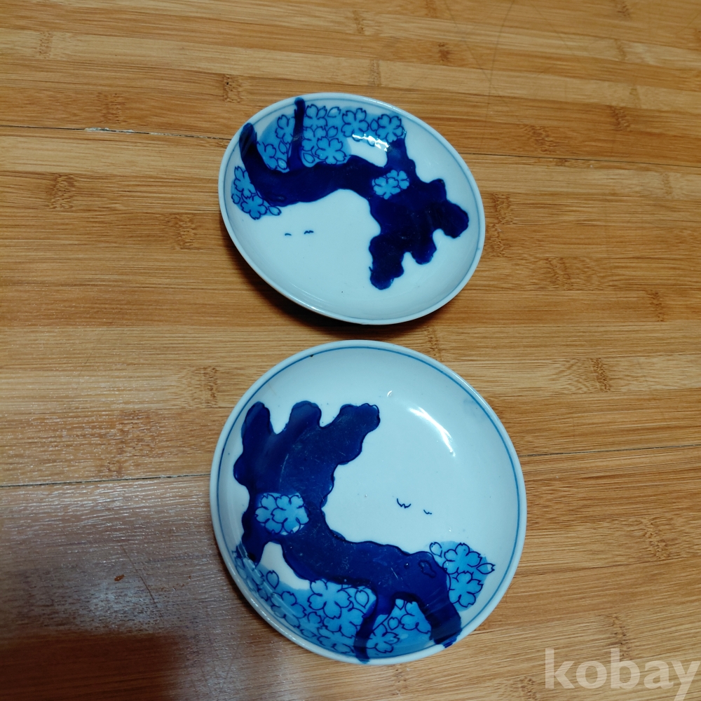 일제강점기 시대 제작사용 청화백자 그림 도자기 접시 두점일괄 올려드립니다