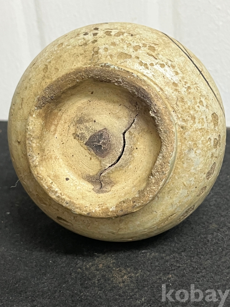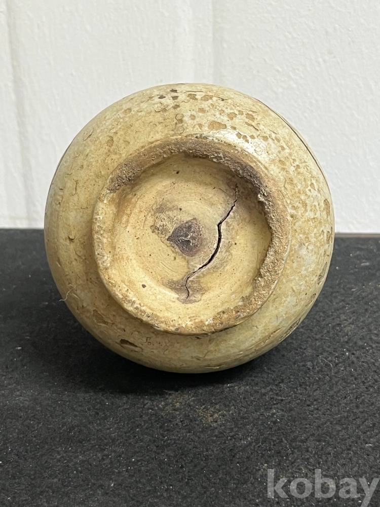 바닥은 소성 과정에서 생긴 가마유가 있으며 내화토를 받쳐구운 흔적이 있습니다.