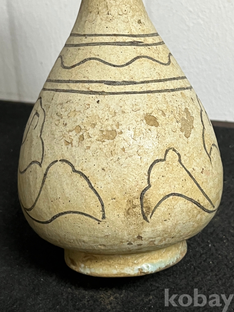백토를 입힌 태토위에 음각으로 연화문을 새긴 분청사기 입니다.