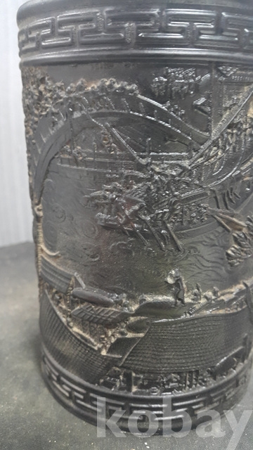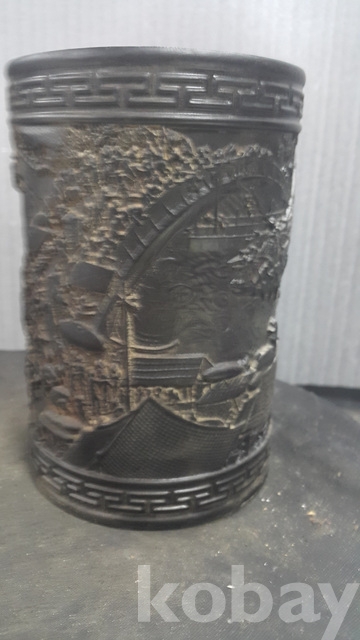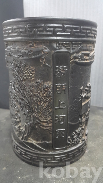b-188.청명상화도조각된 엄청무거운 자연목흑단 필통
