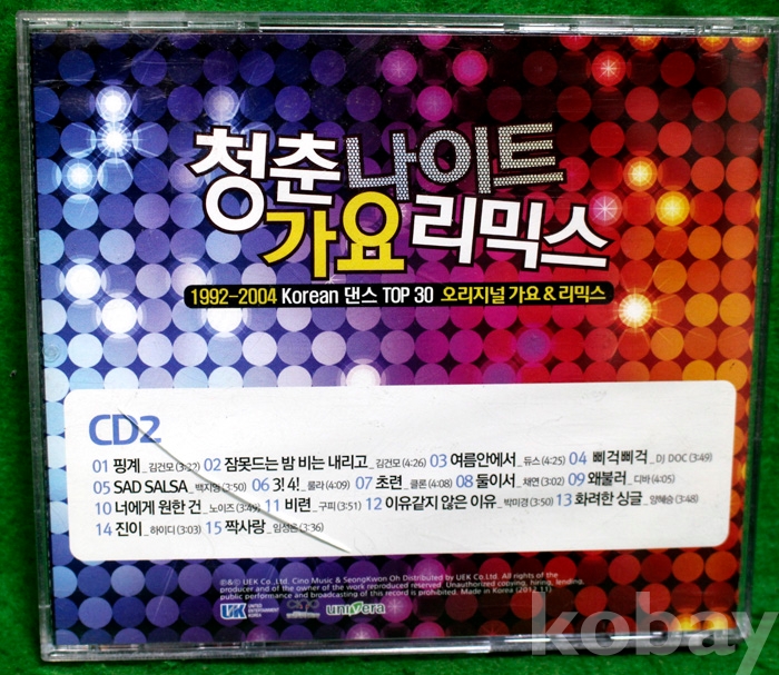 (CD) 청춘 나이트 가요 리믹스 2 - 핑계(김건모) / 여름안에서(듀스) / 이유같지 않은 이유(박미경) ..